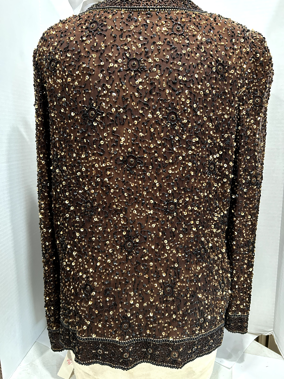 Lawrence Kazar Vintage 1980's new with tags beaded silk brown jacket size XL