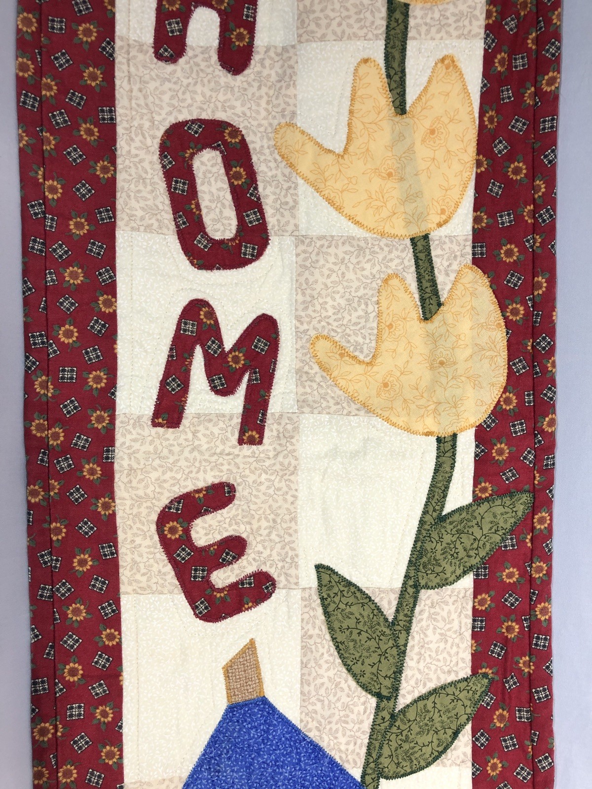 Handmade Art Quilt/Wall Hanging HOME Applique 29.5 X 11 -Preowned