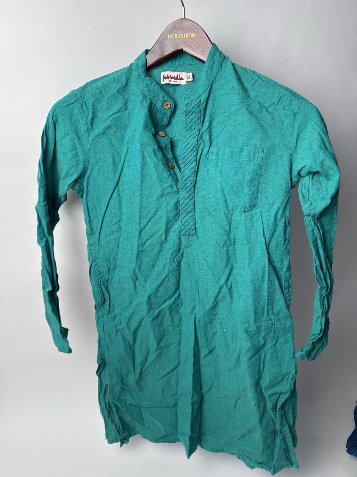 Green/Blue Fabindia Boys Indian Kurta Set, 6-8 Years, Excellent Condition