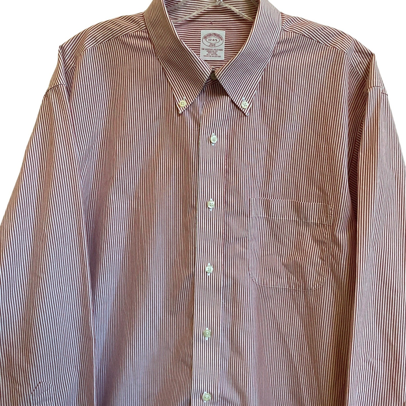 Brooks Brothers Original Polo Shirt Red White Stripe Button Down Reg Fit 17 4/5