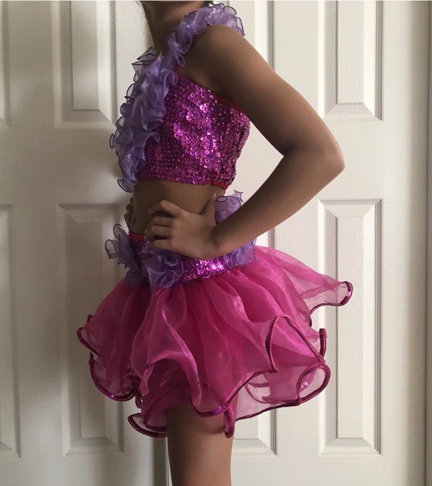 Custom Jazz Tap Musical Theater Solo Dance Costume Size M 7/8 Girls Pink Sequin