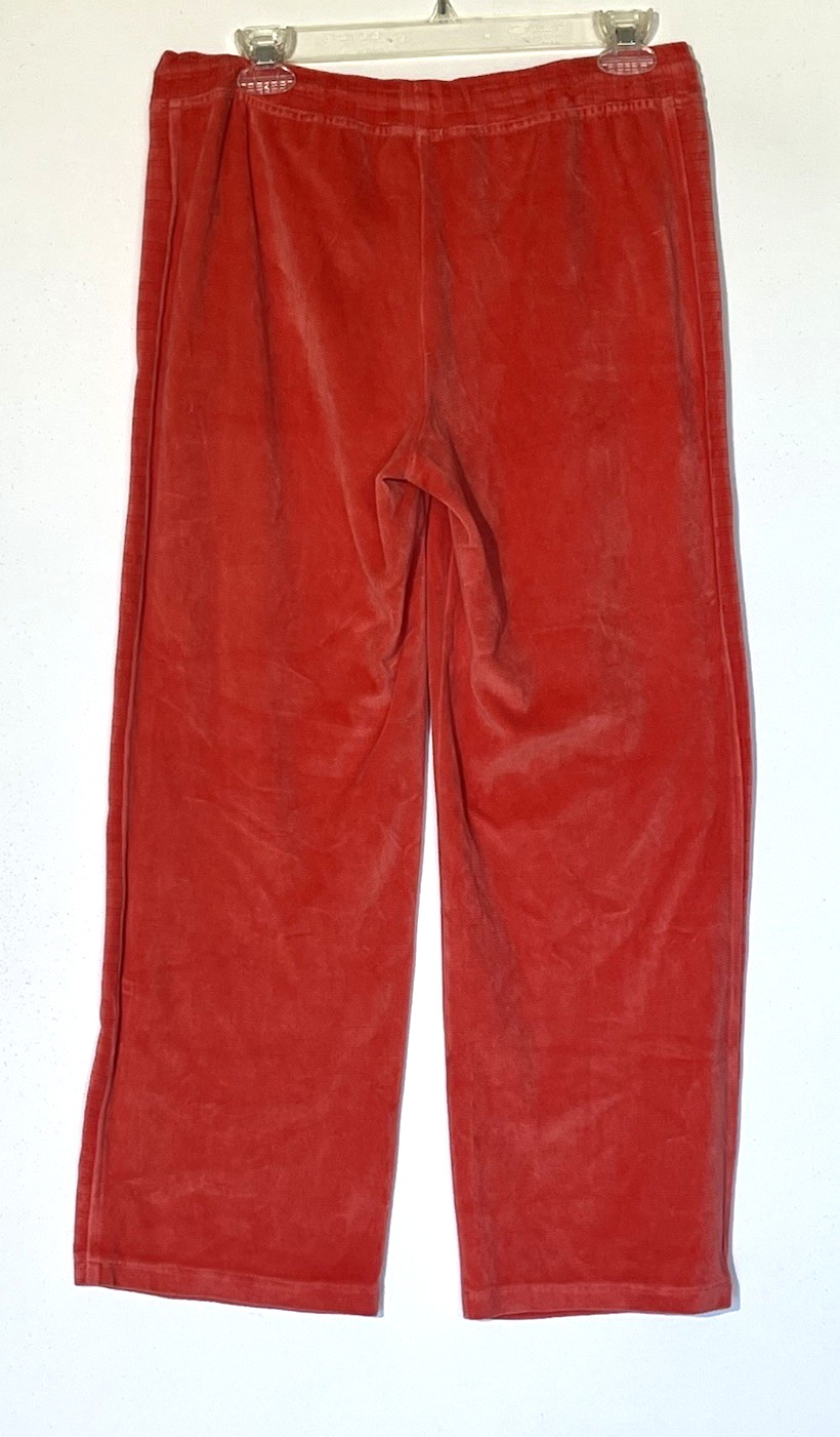 St John Sport Orange Coral Velvet Velour Drawstring Lounge Track Pants Sz P