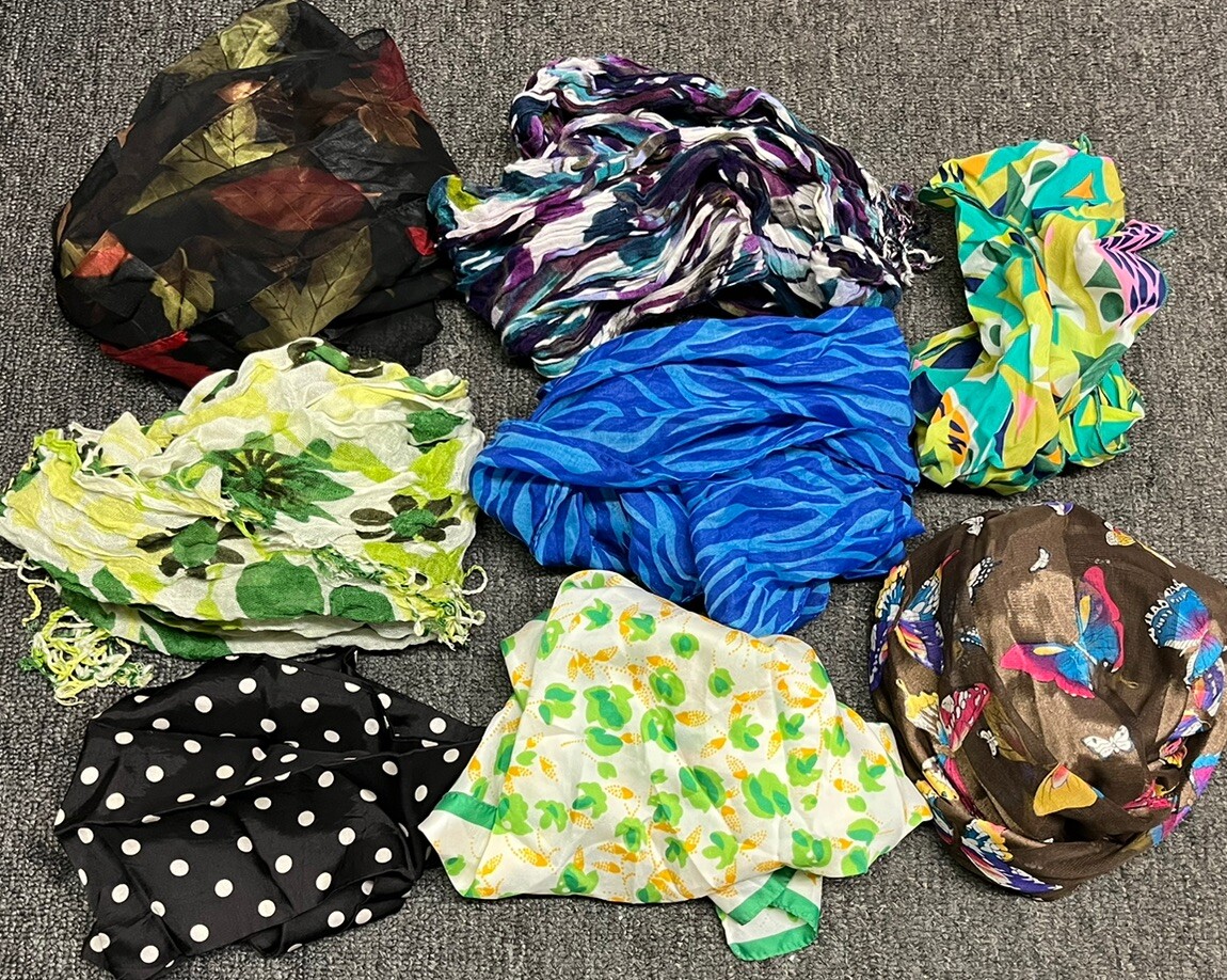 Vintage Fashion Scarves Wraps Multicolored Patterns Lot Of 8