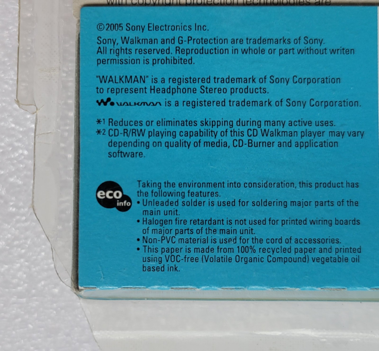 2005 New/Old Stock/Sealed w/ Package Wear SONY Walkman D-EJ001 BLUE CD Player