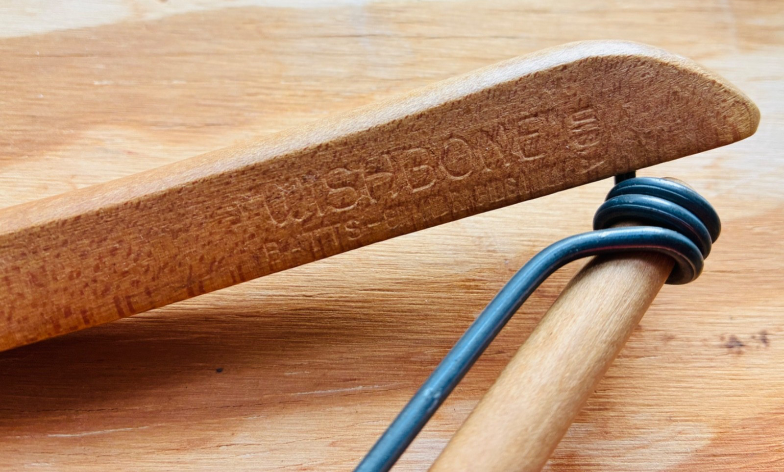 как выглядит Vintage CARSON PIRIE SCOTT Wooden Clothes Hanger WISHBONE BATTS Men