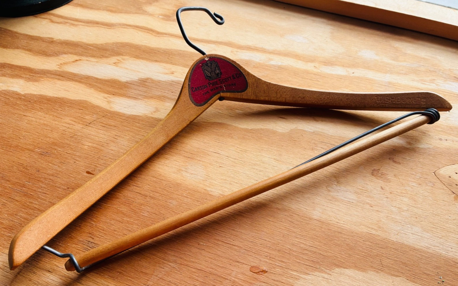 Vintage CARSON PIRIE SCOTT Wooden Clothes Hanger WISHBONE BATTS Men's Store