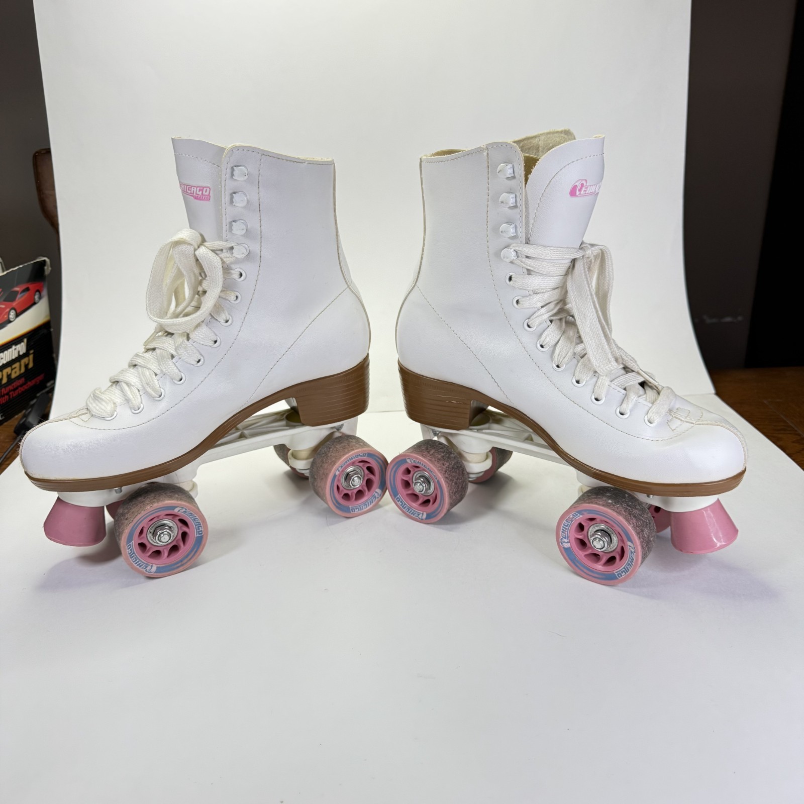 как выглядит Chicago Womens Rink Roller Skates - White 8 - PINK Wheels фото