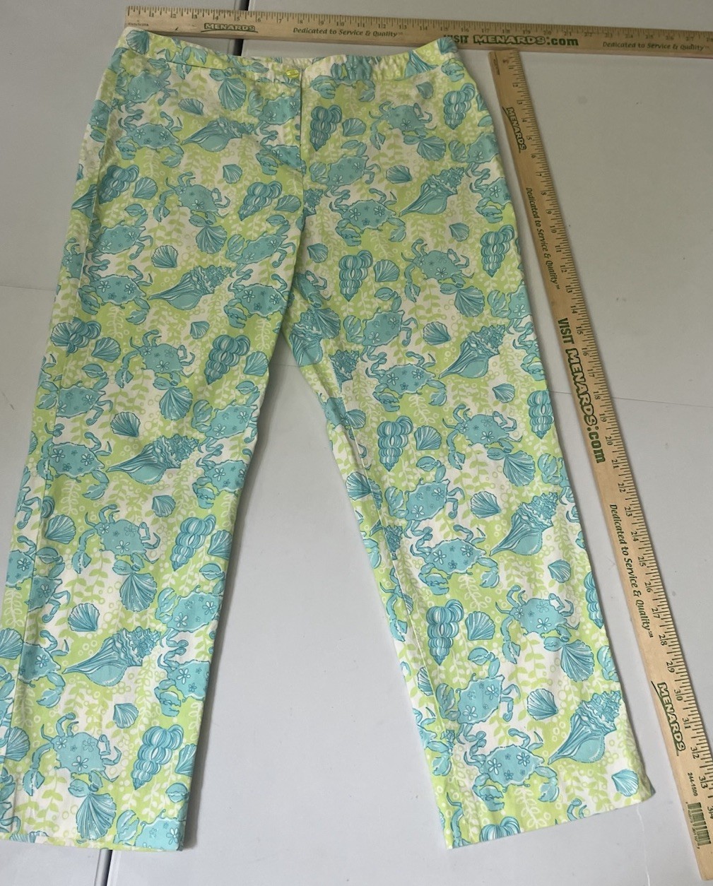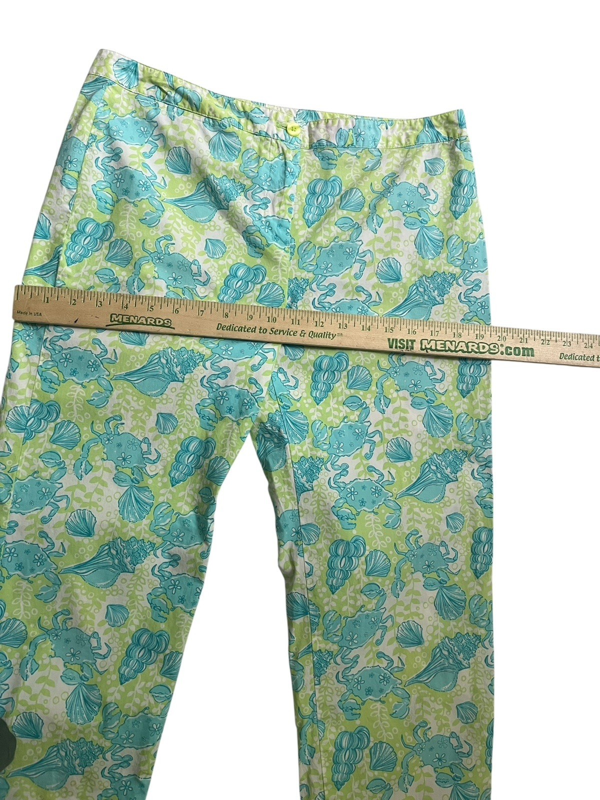 как выглядит Vtg Lilly Pulitzer Crab Print Pants 10 Cropped Blue Green Beach Resort Preppy фото