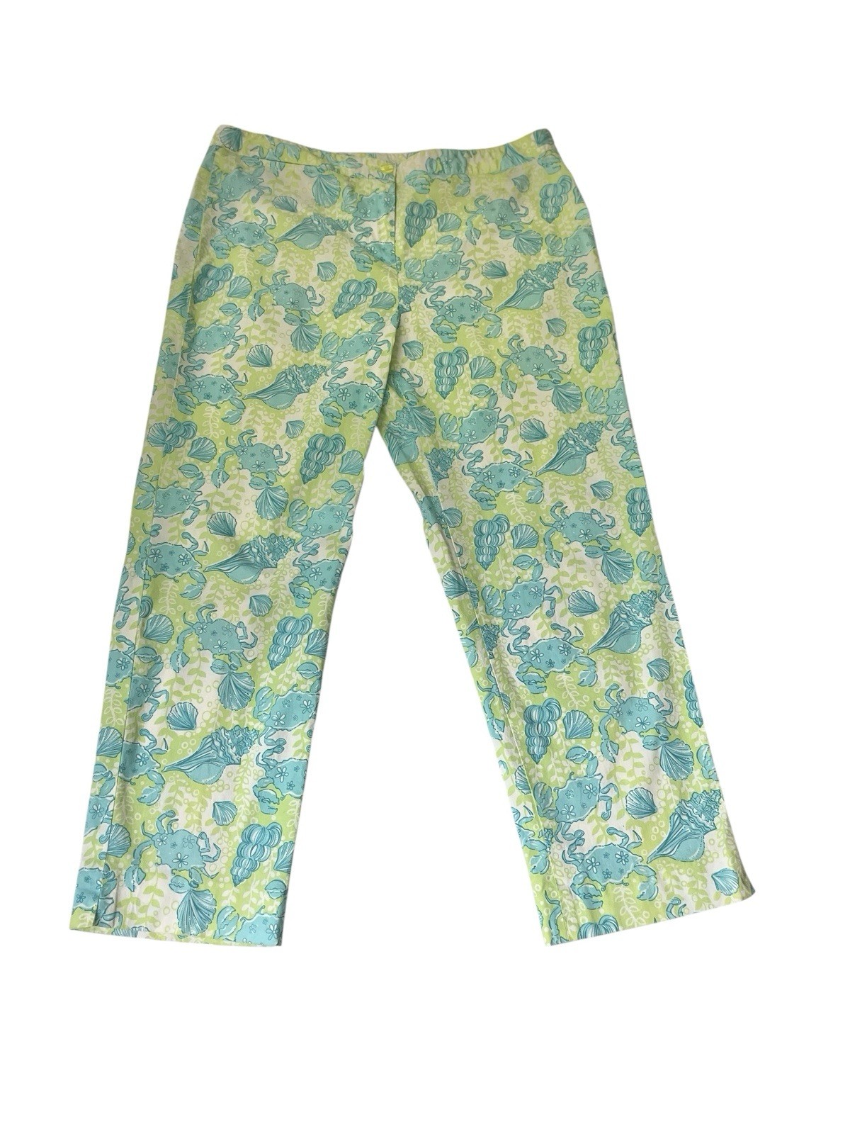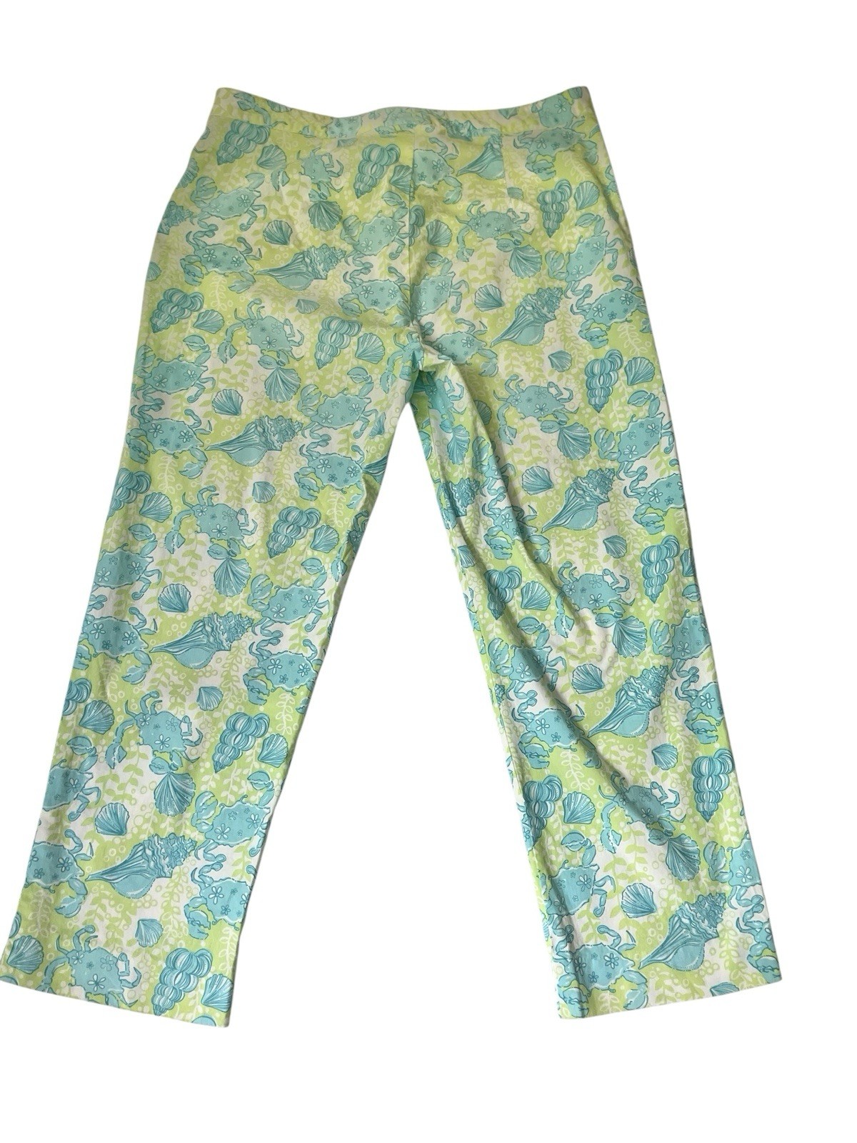 Vtg Lilly Pulitzer Crab Print Pants 10 Cropped Blue Green Beach Resort Preppy