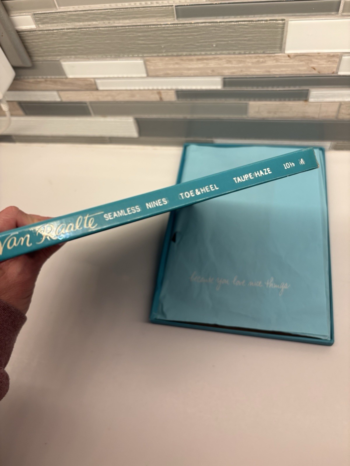 как выглядит 2 Pair Vintage Van Raalte Seamless Nines Toe Heeltaupe Haze 10.5 M Stockings Box фото