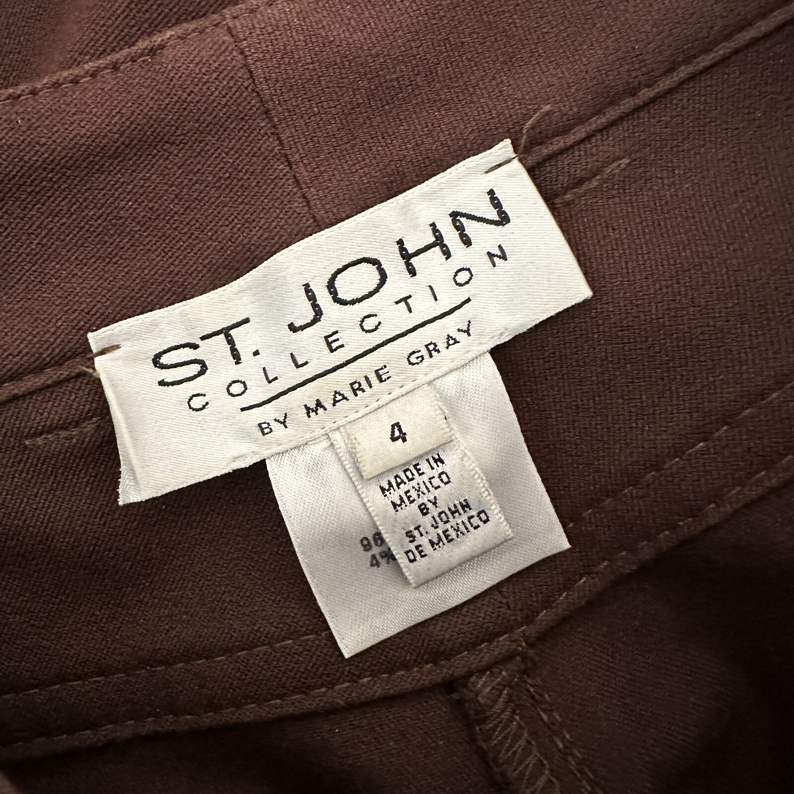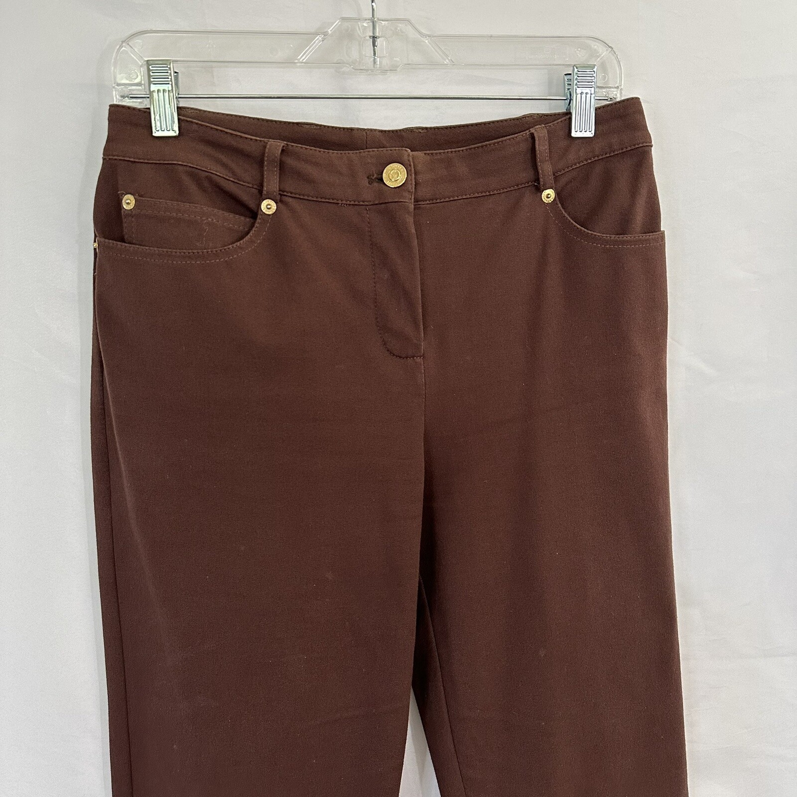 St. John Collection Marie Gray Cotton Blend Flared Leg Trousers Brown Sz 4 Long