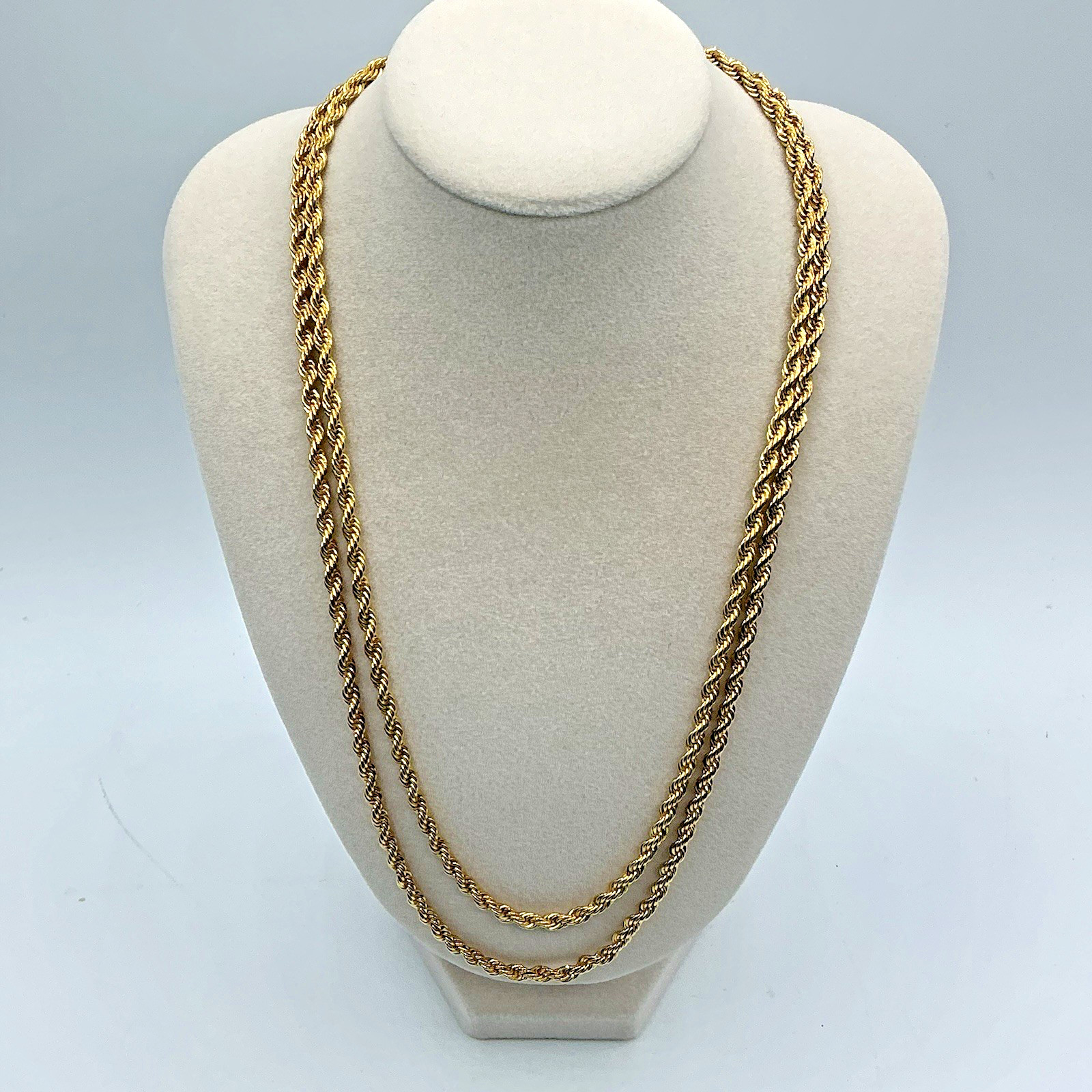 2 Gold Tone Twisted Rope Chain Necklaces 18 20 Lobster Clasp Unmarked