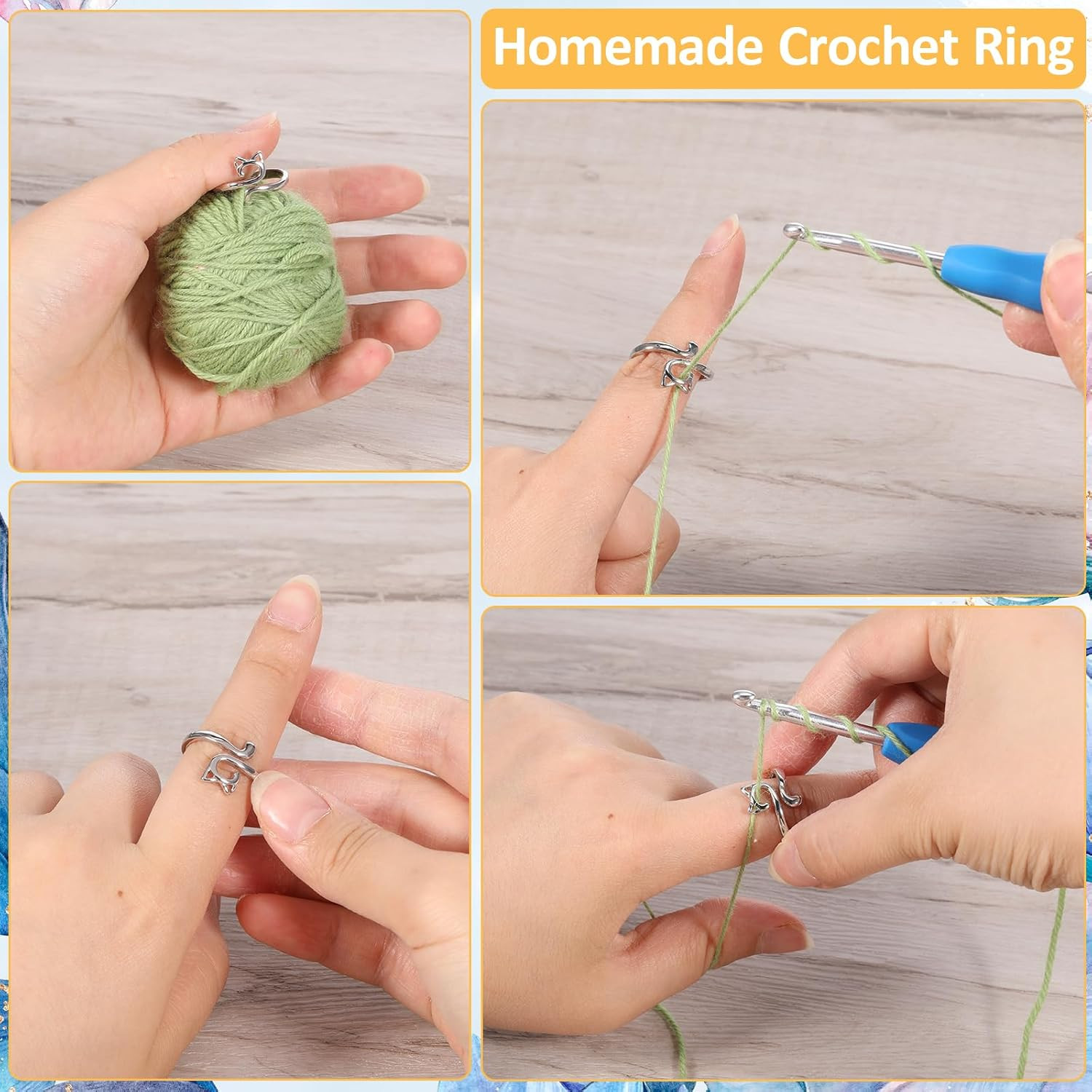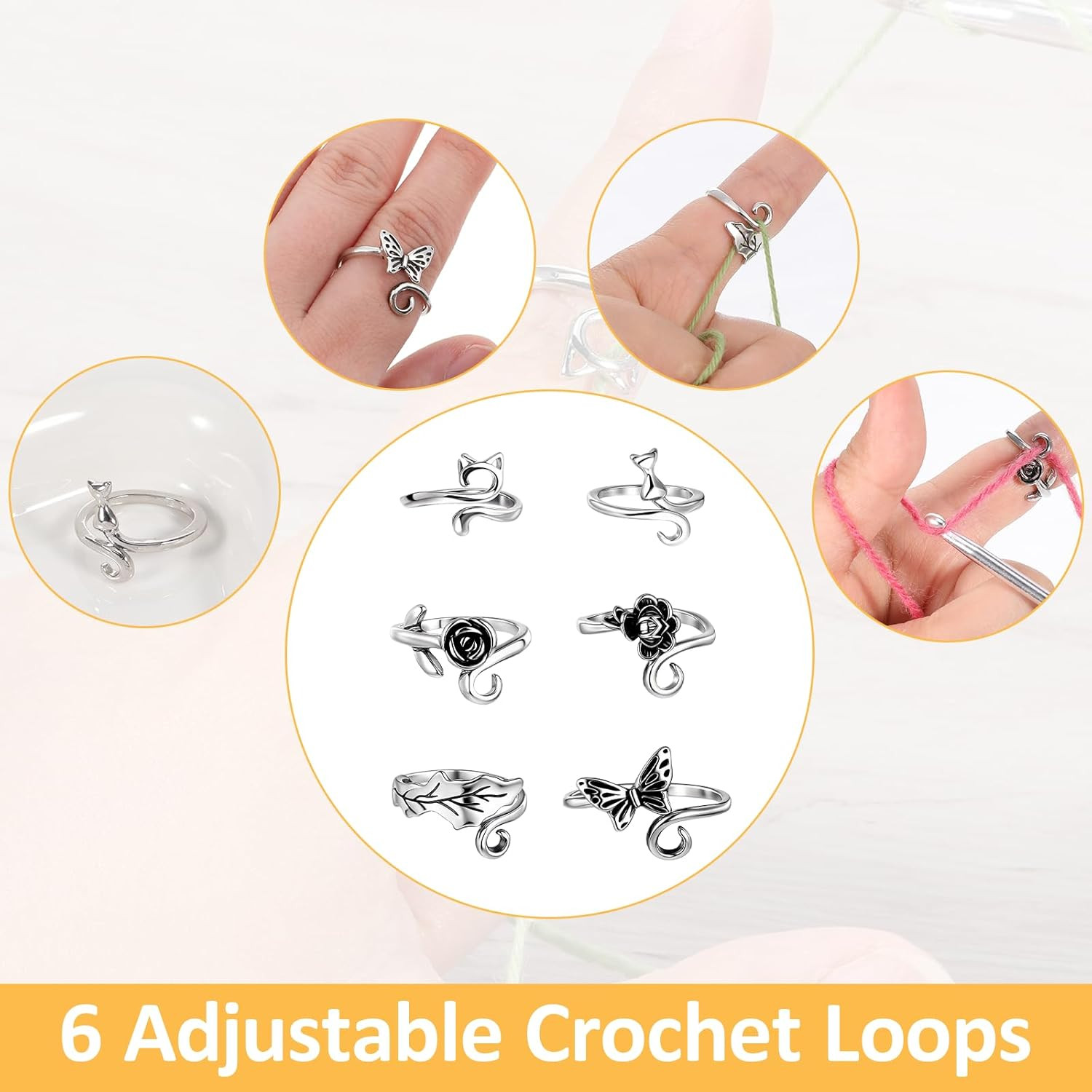как выглядит 6 Pcs Adjustable Crochet Rings Finger Tension Yarn Guide Knitting Craft Tools фото