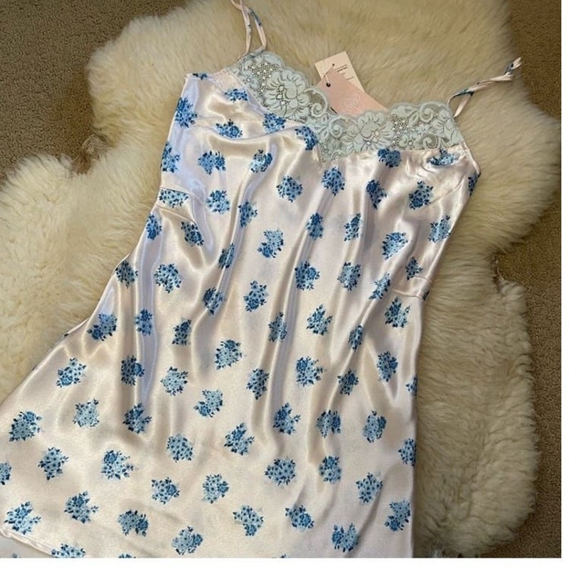 We are HAH Let It Slip Dress Ditsy Floral French Blue Intimates Size Small NWT