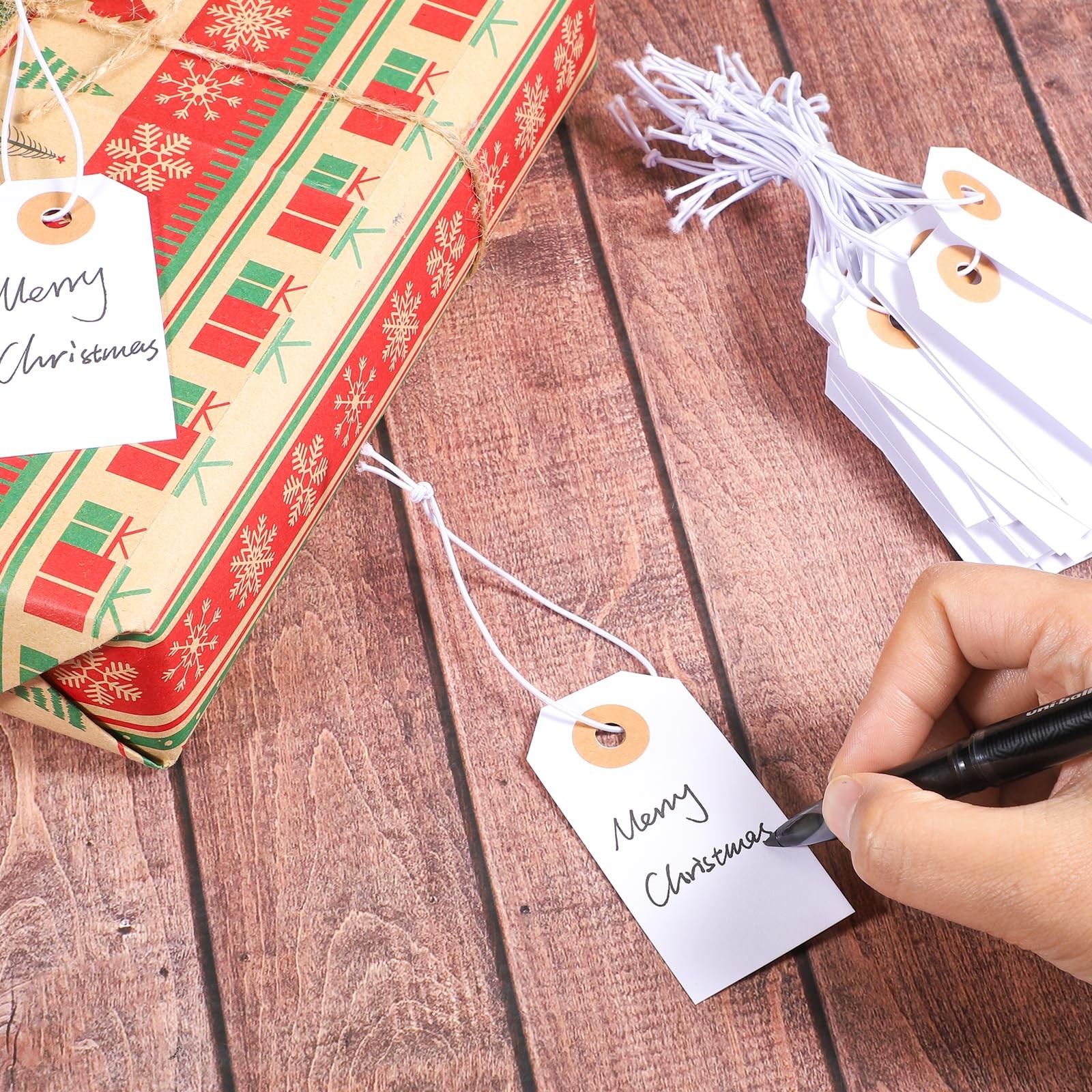 100 Pack Gift Tags with Elastic String White Price Tags Marking Hang Tag Atta...