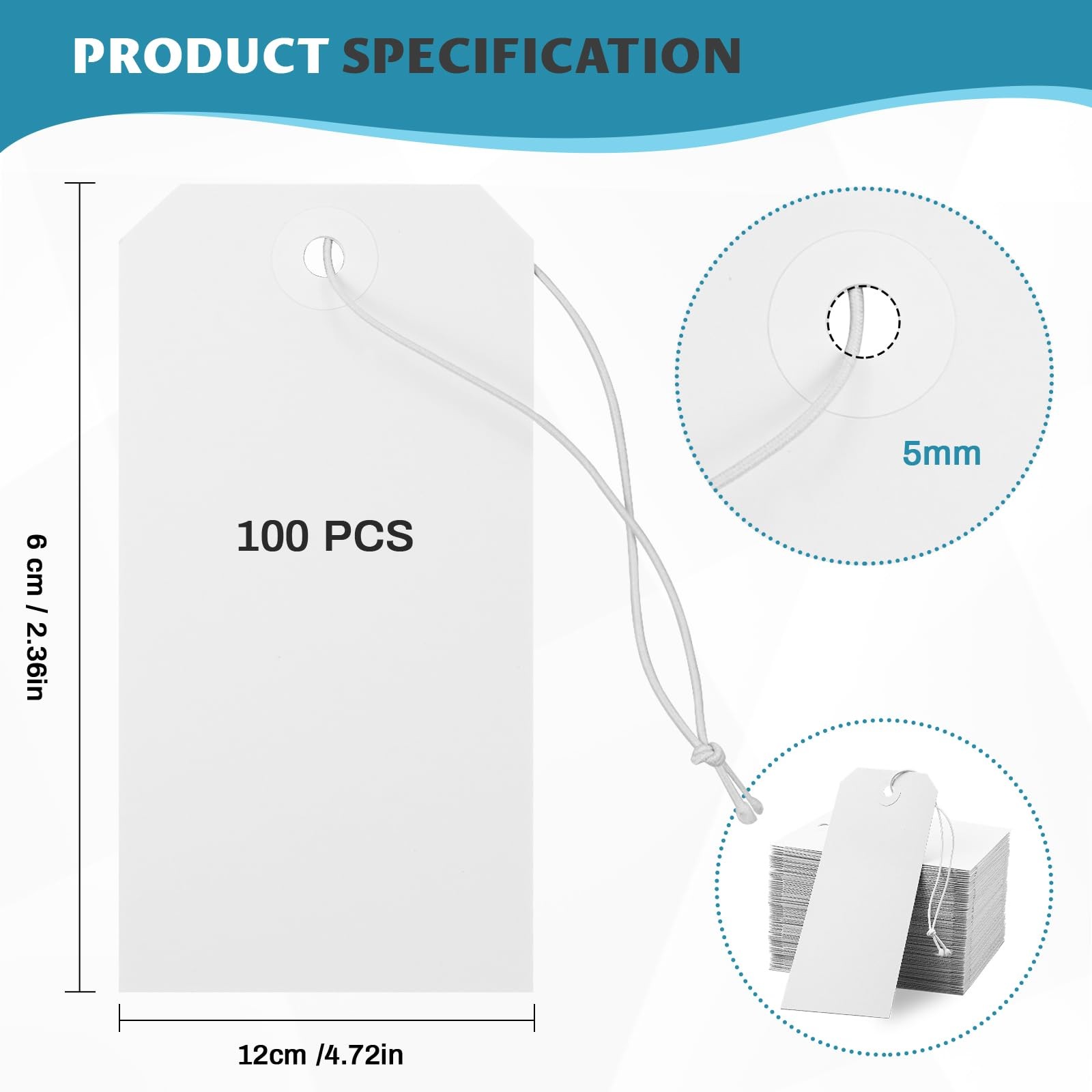100 Pack White Shipping Tags with Elastic String Blank Labeling Tags with Str...