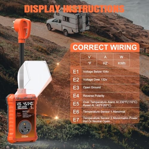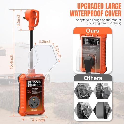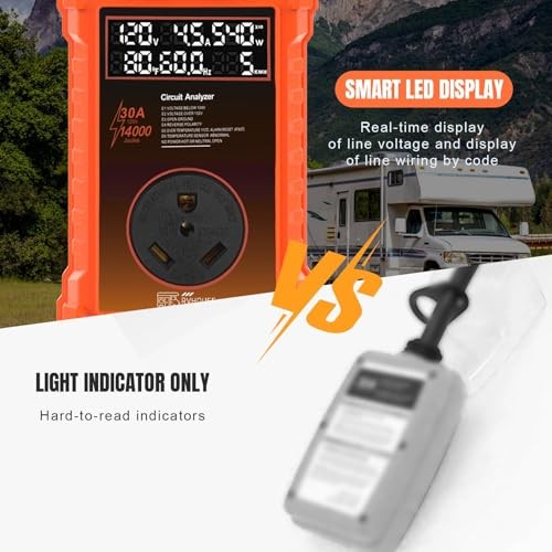 30 Amp RV Surge Protector 14,000J with Smart LED Display Real-Time Orange