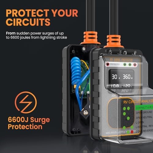 RV Surge Protector 6600J Smart Circuit Analyzer with LED Real-Time 30 Amp