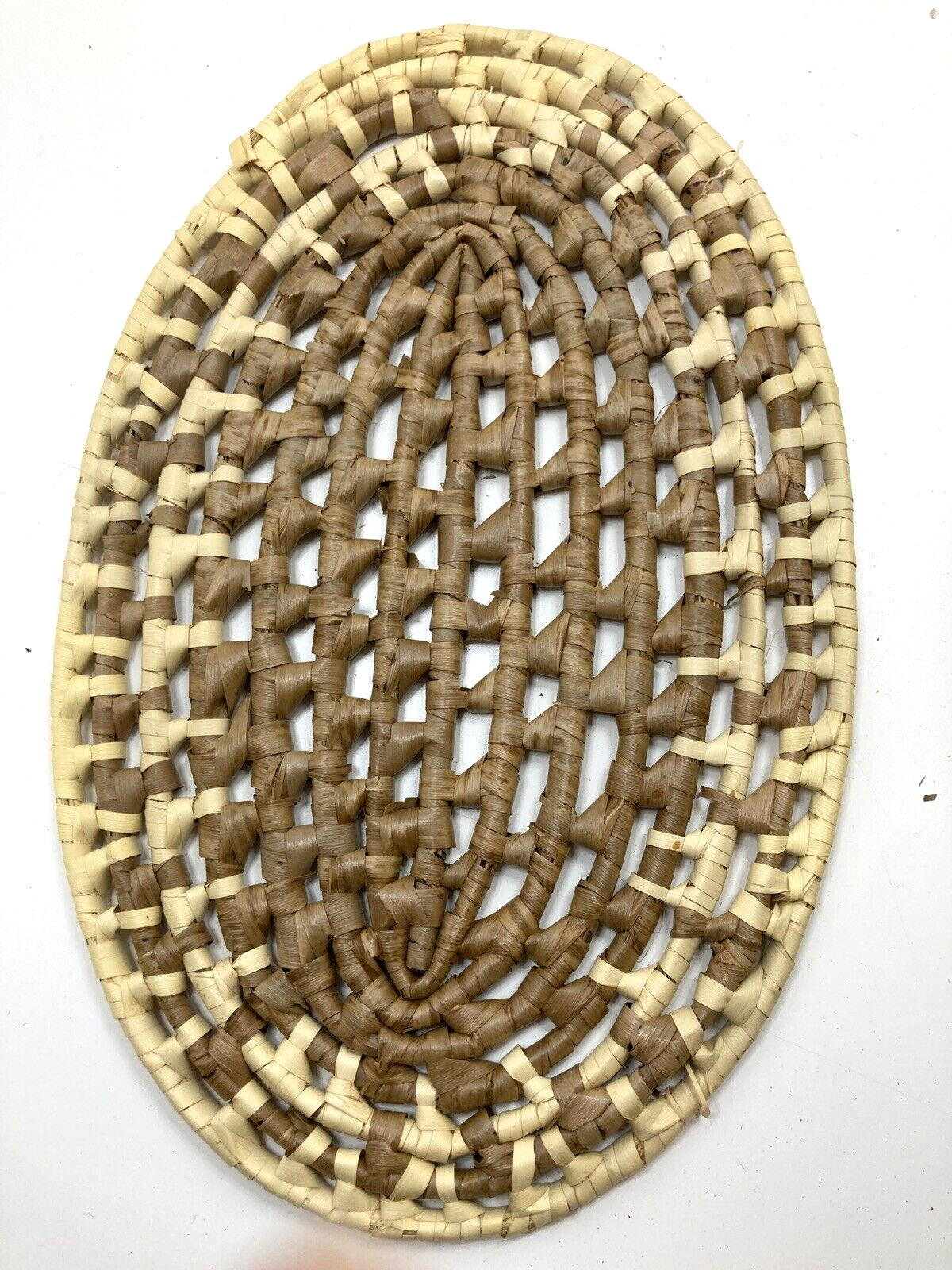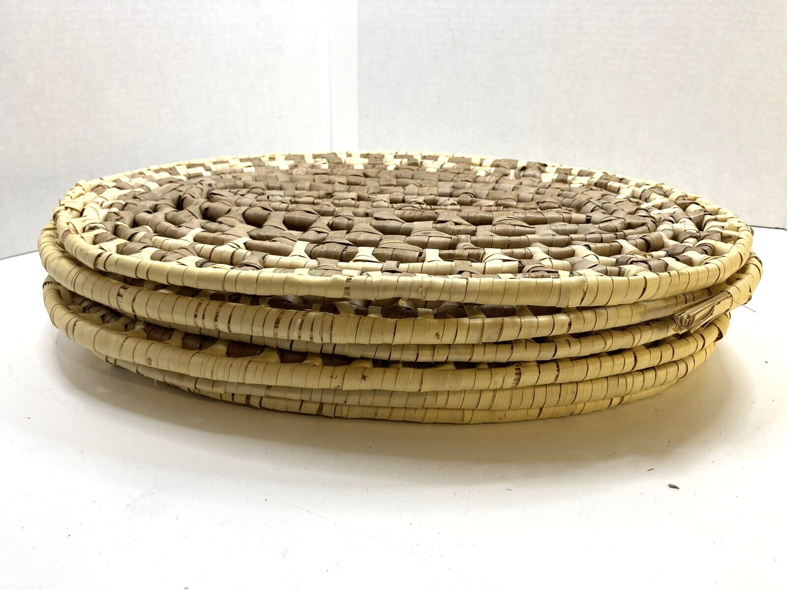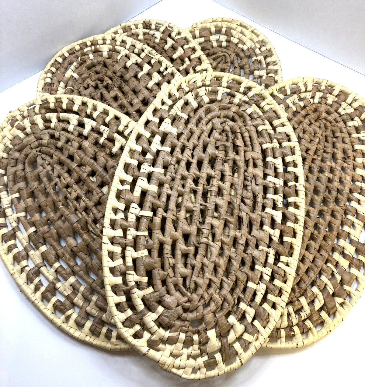 Set of 6 Vtg Wicker Rattan Natural Woven Seagrass Boho Placemats Oval 16 MCM