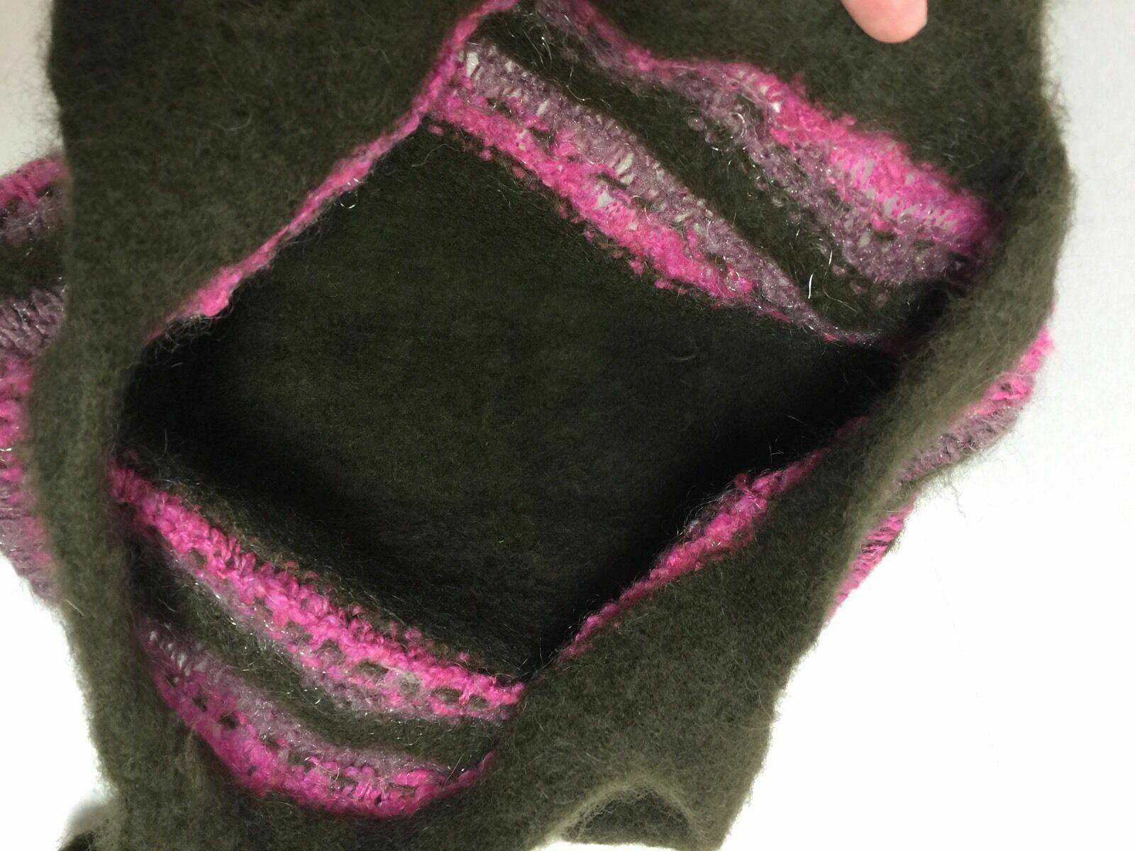 как выглядит Handmade Wool Felted Handbag BOHO Brown/Pink/Lavender Medium Sz A378 фото