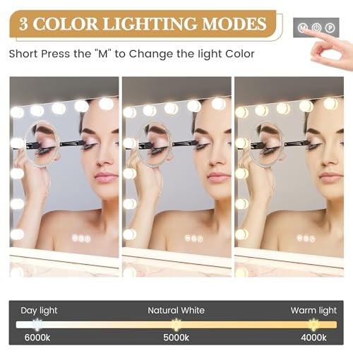 Vanity Mirror with Lights, Lighted Mirror with 15 Dimmable LED Bulbs, Makeup