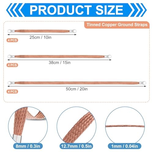 12 Pcs Ground Straps, 10/15/20 Inch Engine Universal Automotive Orange