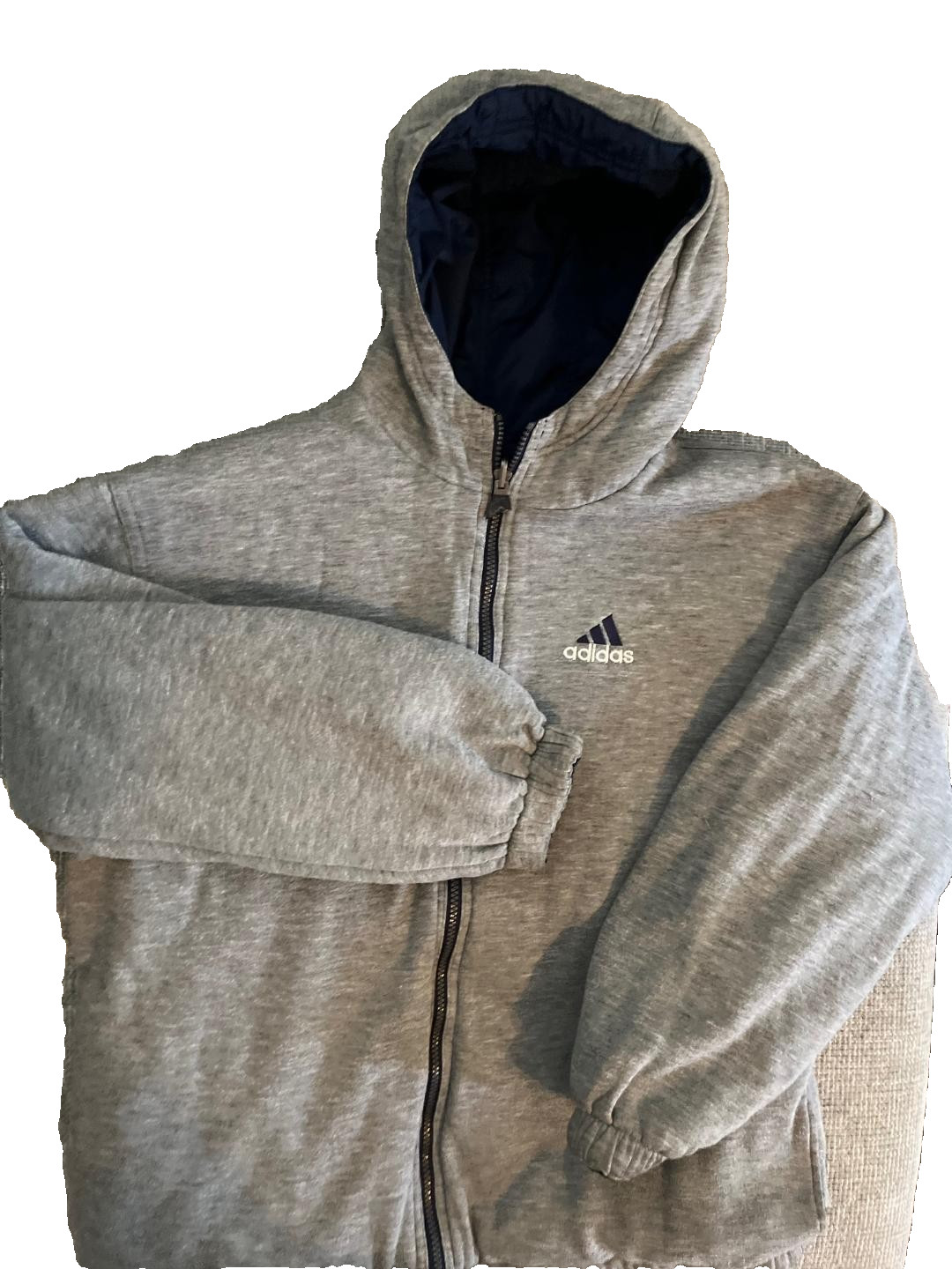 Y2K Adidas Youth XL 18-20 Reversible Hooded Jacket Windbreaker Navy Blue / Gray