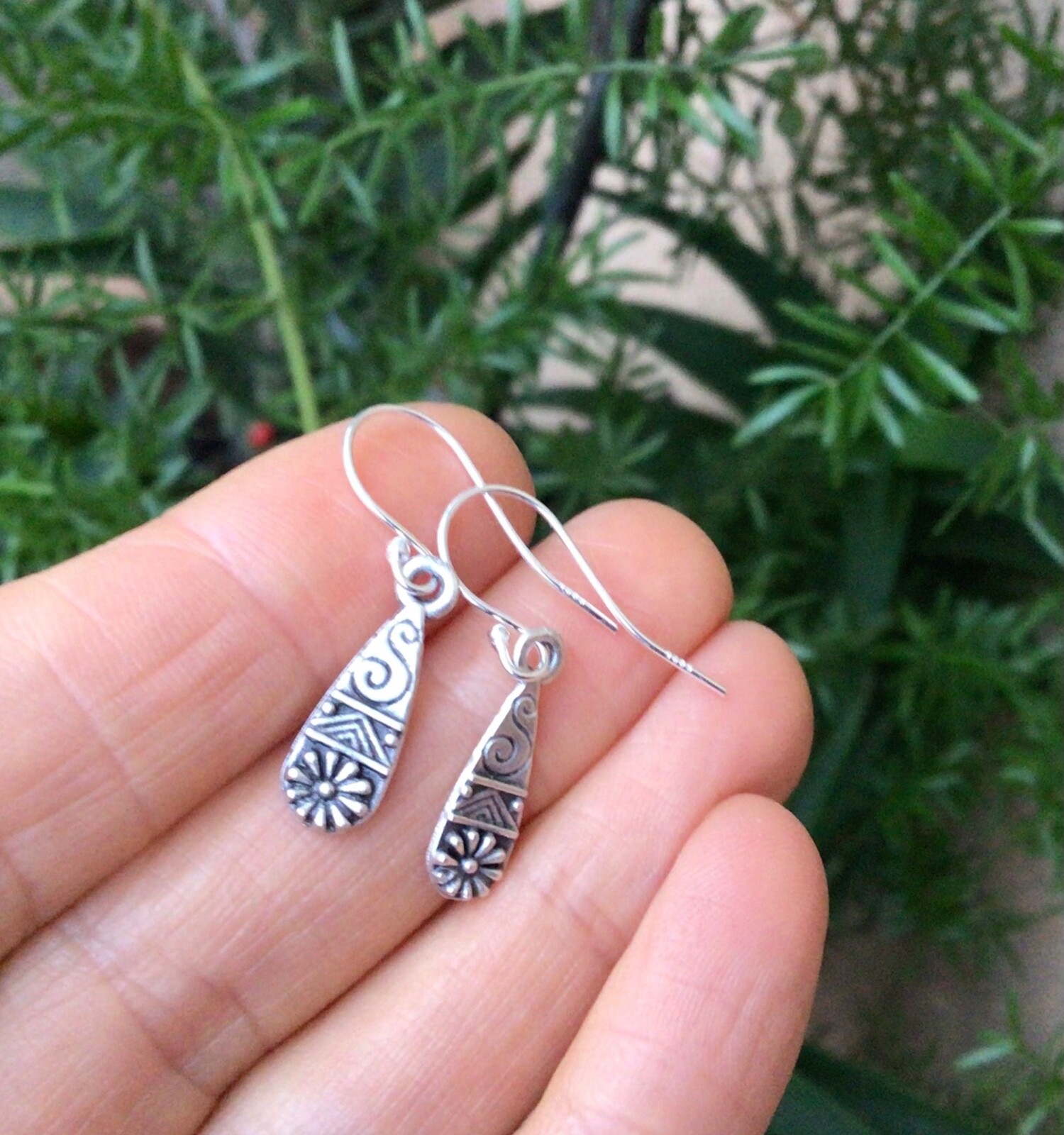 NEW Sterling Silver Sundance Charm Minimalist Flower Earrings Artisan Jewelry