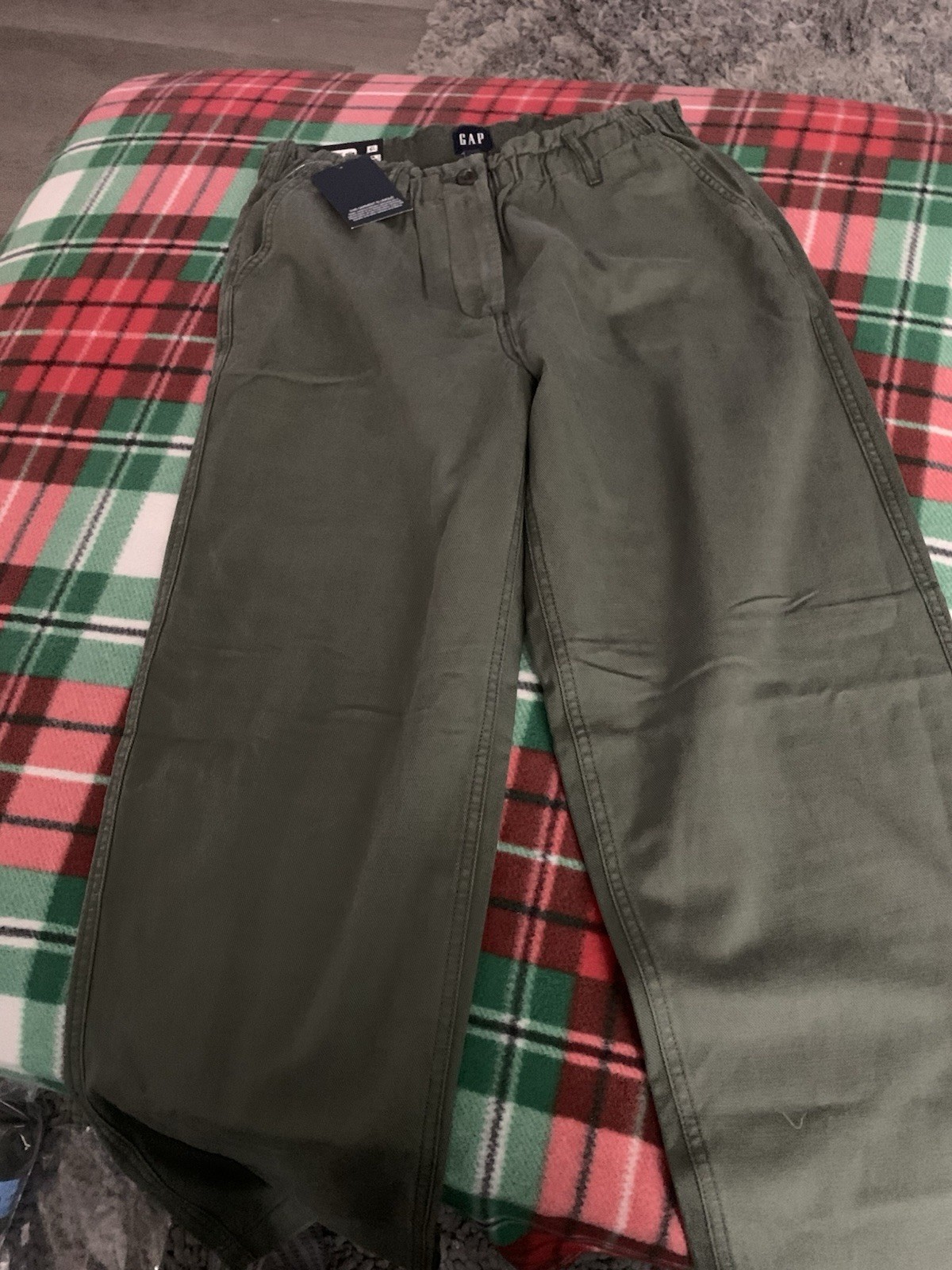 как выглядит Gap Ladies Twill Straight Leg Pants Size M, Army Green фото