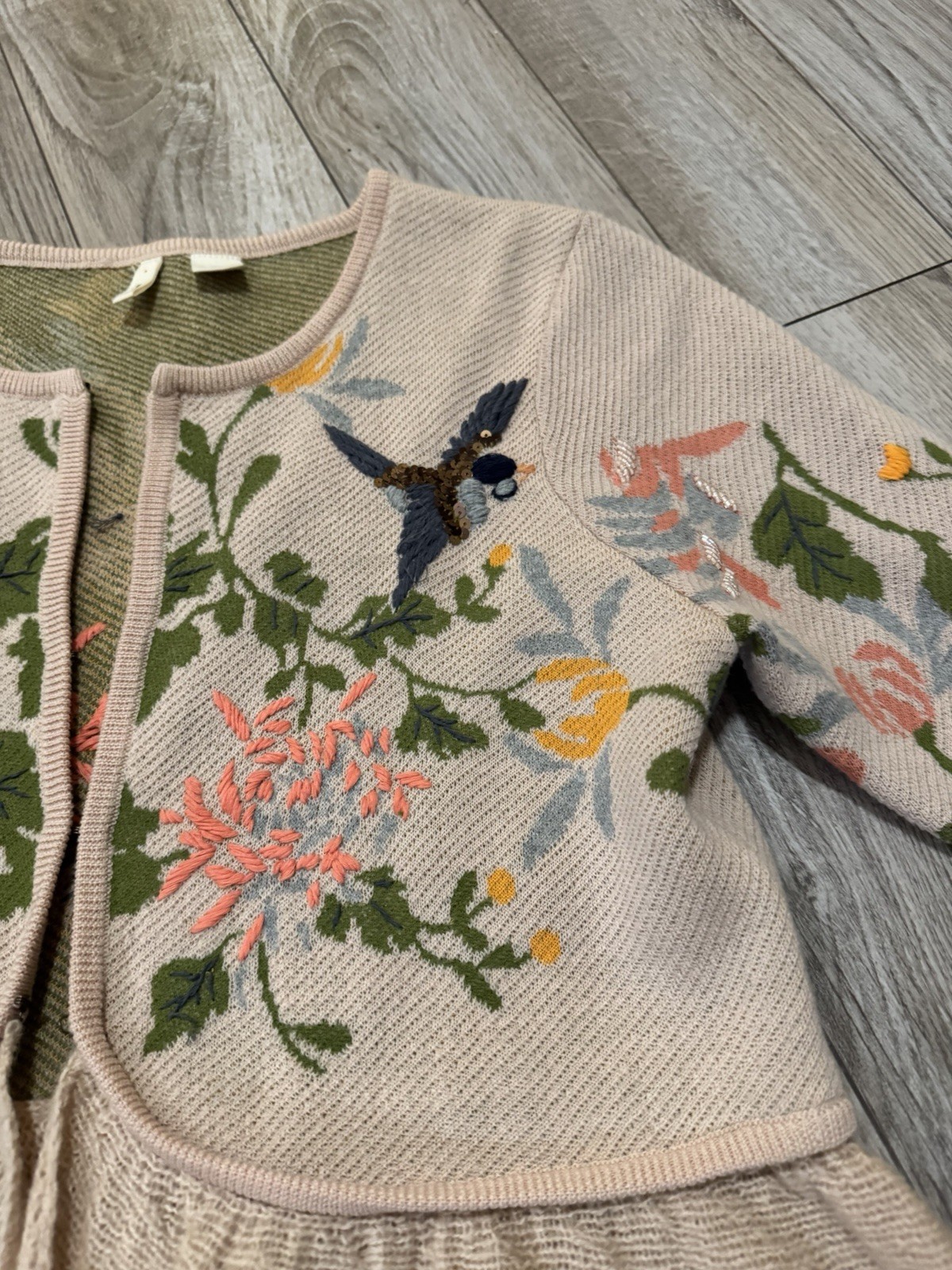 как выглядит Anthropologie Moth Embroidered Beaded Floral Bird Cardigan Sweater XS 168 фото