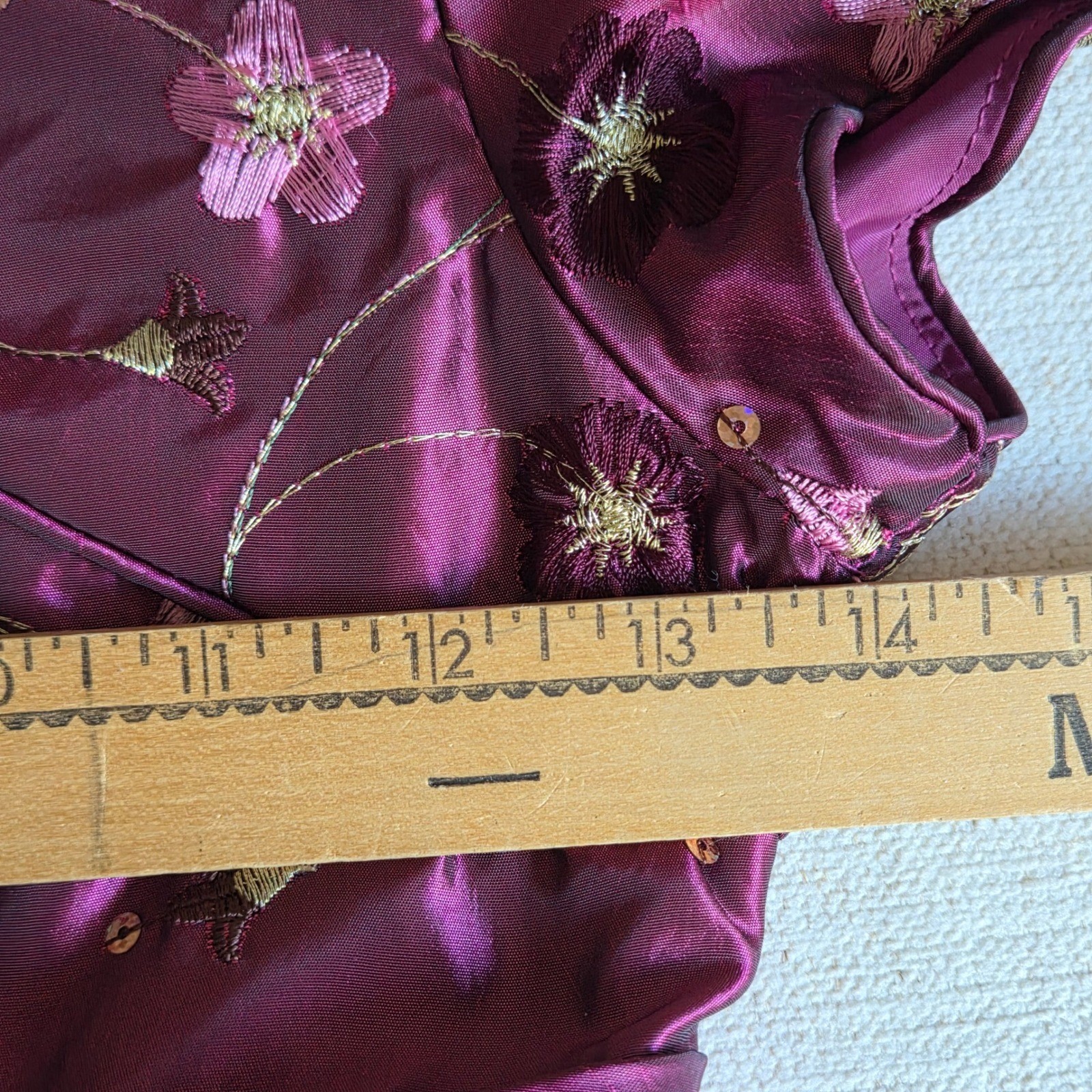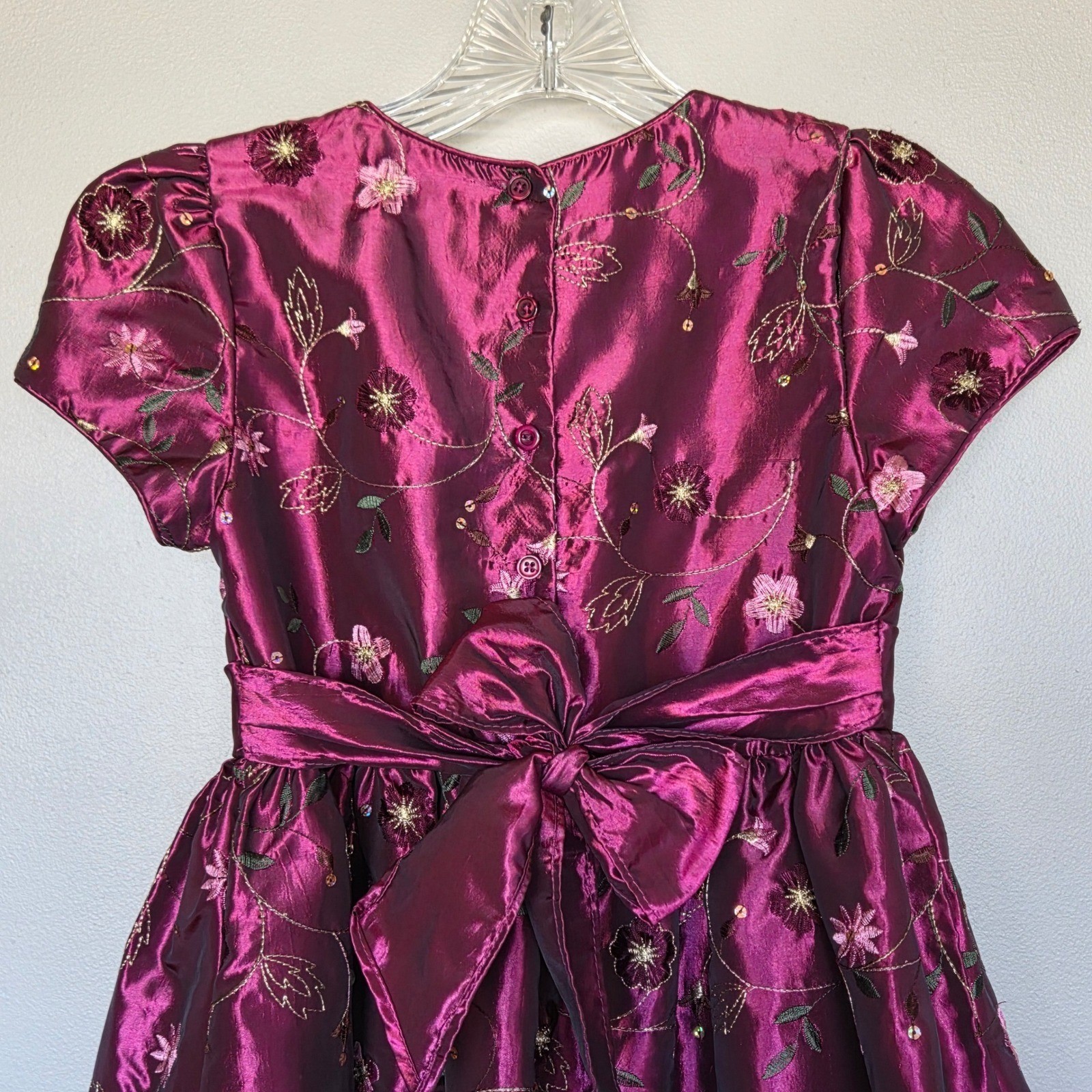как выглядит Marmellata Girls Purple Satin Party Dress Size 10 Floral Embroidered Elegant фото