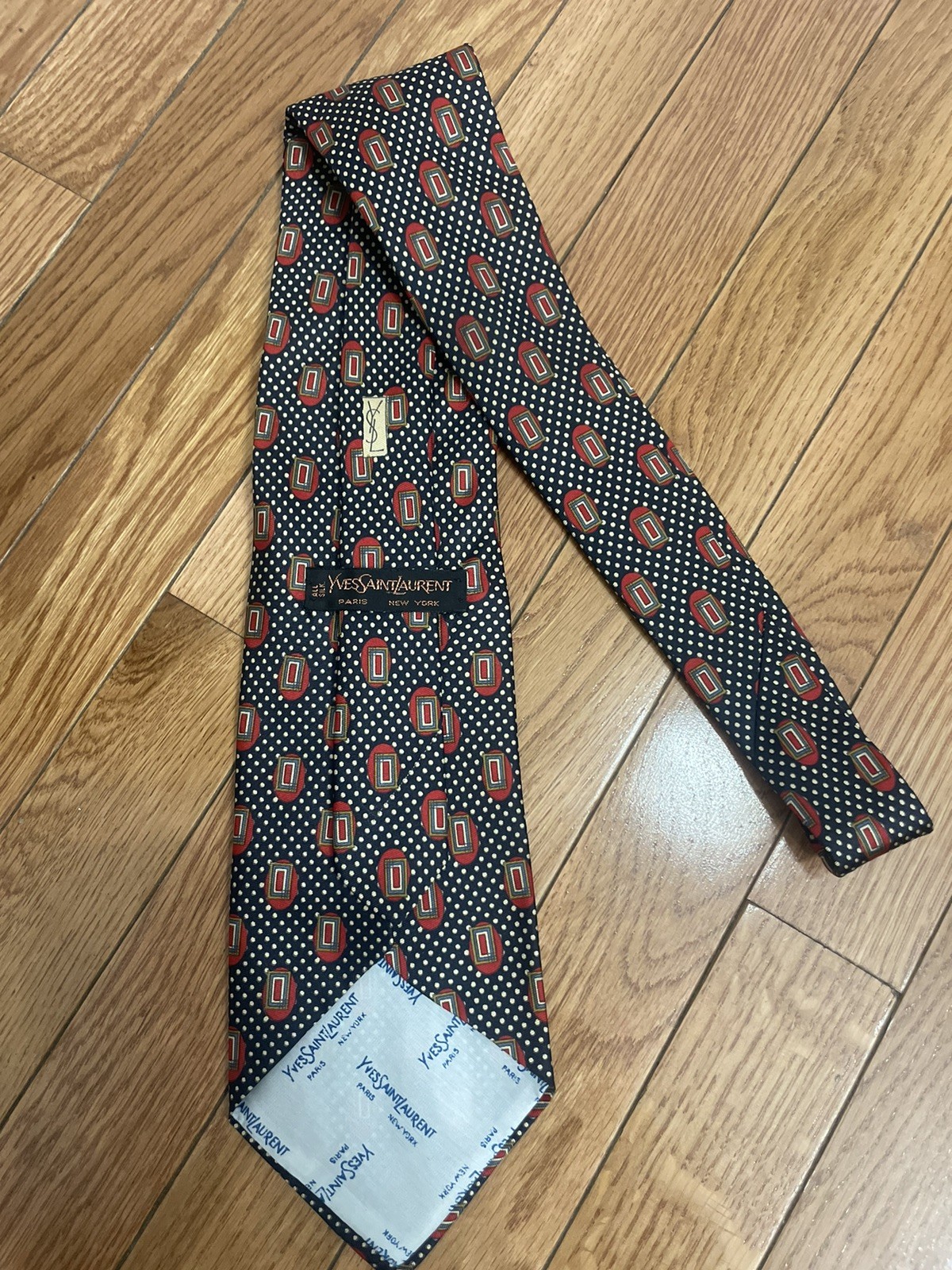как выглядит Yves Saint Laurent vintage Geometric Black Red Neck tie Silk фото