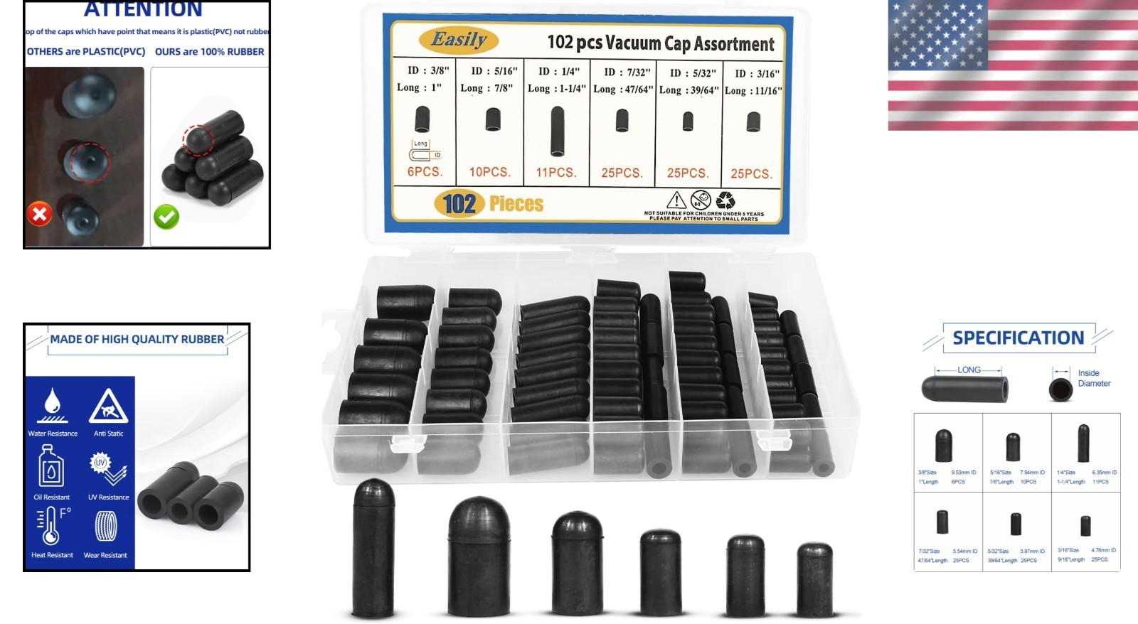 Included Components: Rubber Vacuum Caps