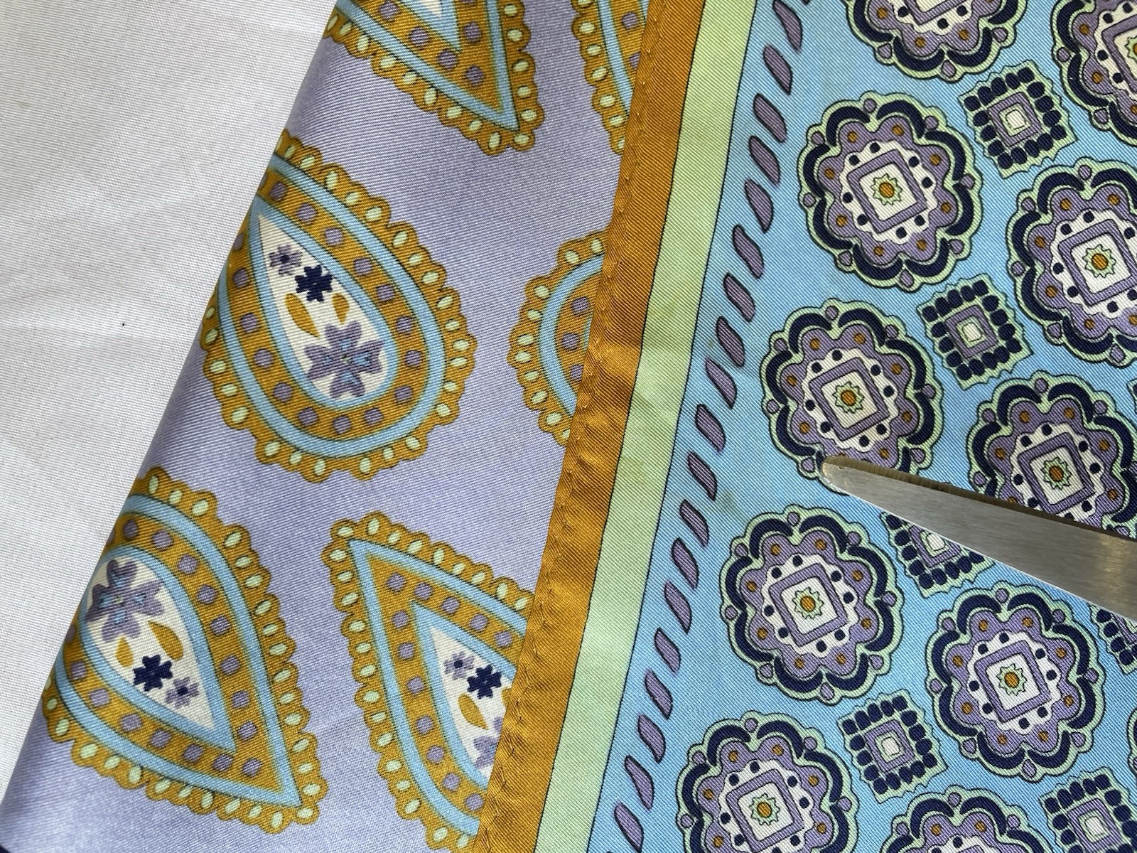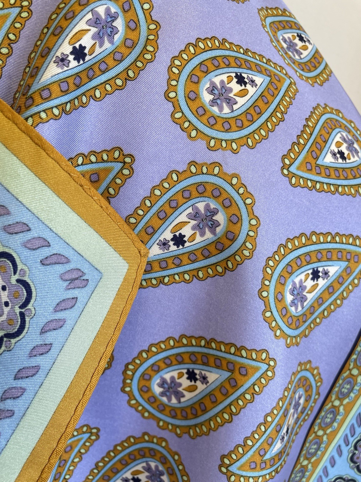 как выглядит H75 Vintage Paisley Print Square Scarf Blue Purple Gold Satin Feel фото