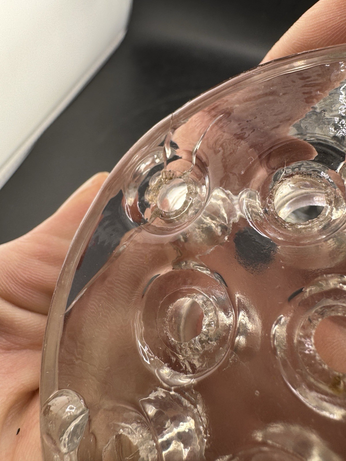 Lot Of 3 Glass Flower Frogs / 2 Have Inner Glas Cracks On Base See Pics