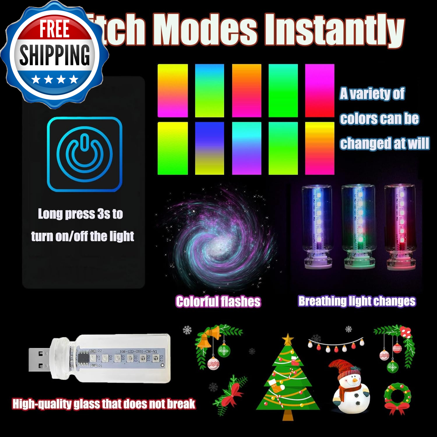 13 in 1 Car USB Night Light Touch Adjustment Interior Car Lights Portable...