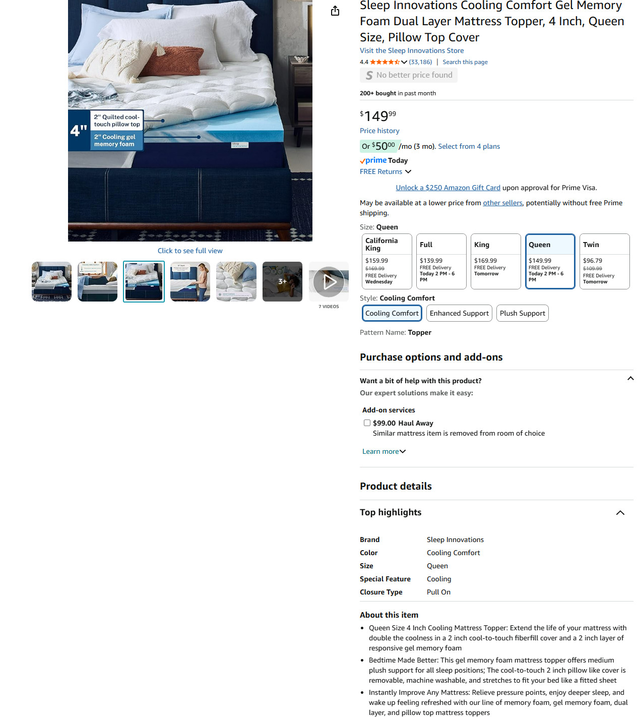 как выглядит Cooling Comfort Gel Memory Foam Dual Layer Mattress Topper Queen 2254RR8 фото
