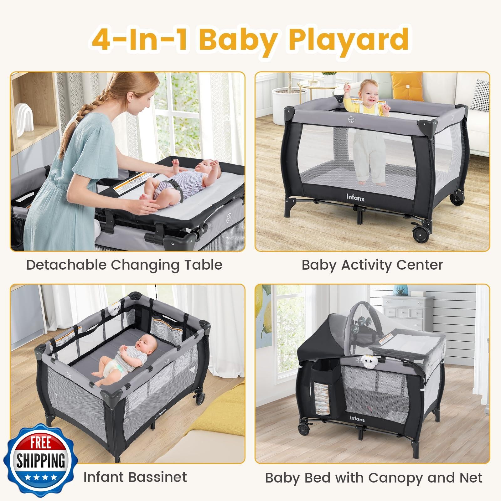 INFANS 4 in 1 Pack and Play, Portable Travel Baby Playard with Ba