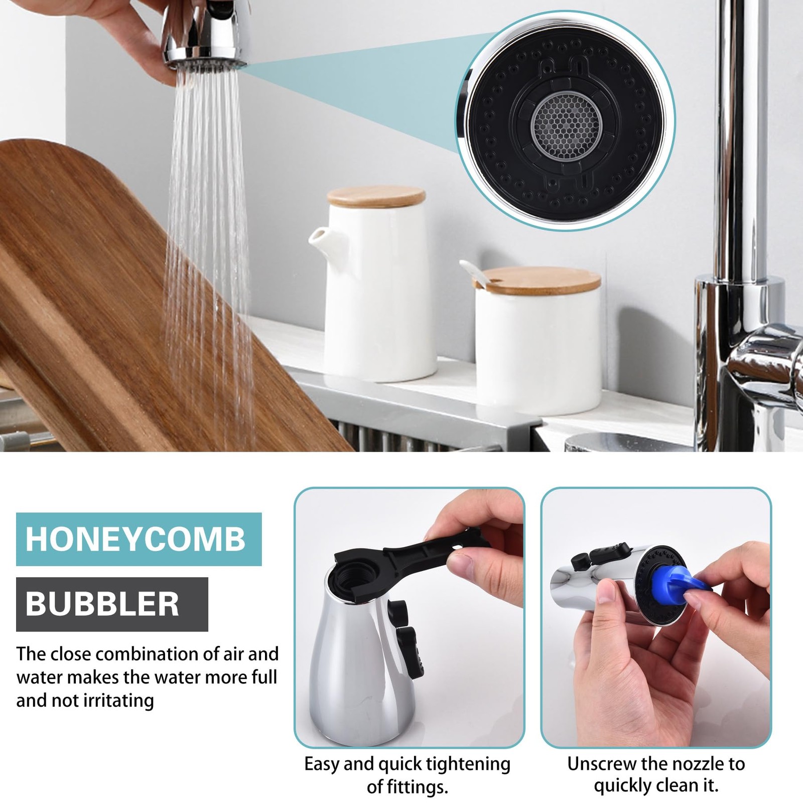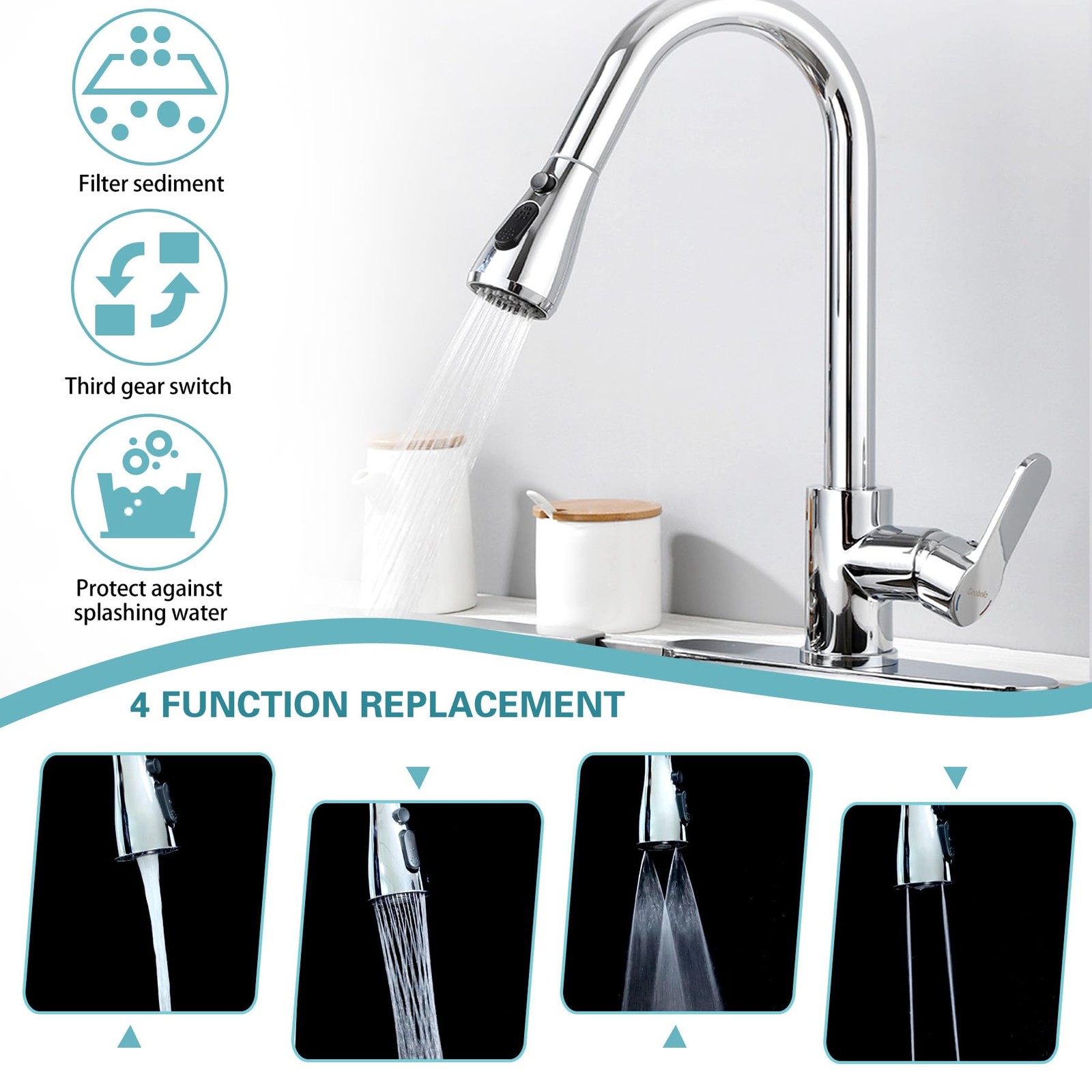 Hsmhose Kitchen Faucet Head Replacement 4 Modes, Pull Down Chrome