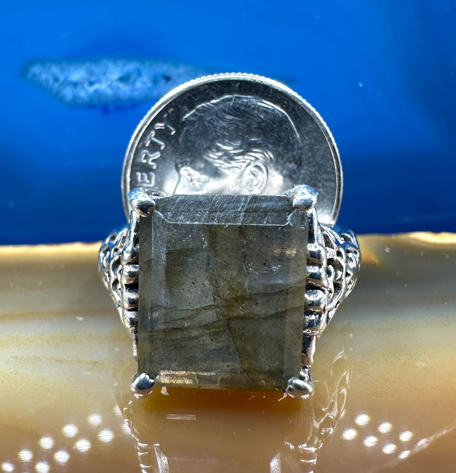 как выглядит Labradorite Filigree Ring .925 Sterling Silver Size 9 фото