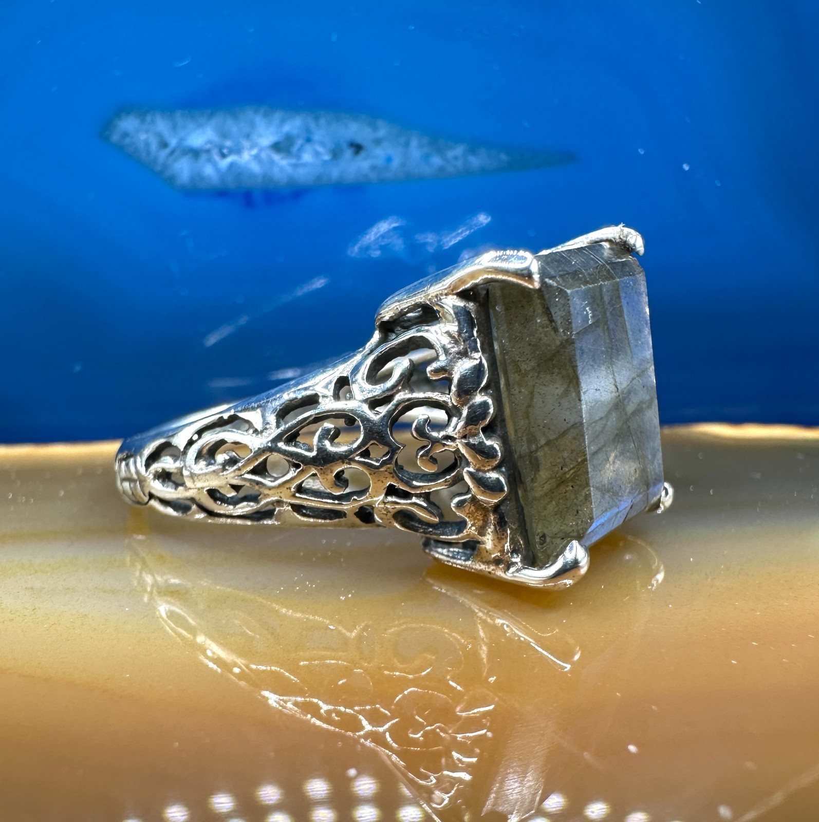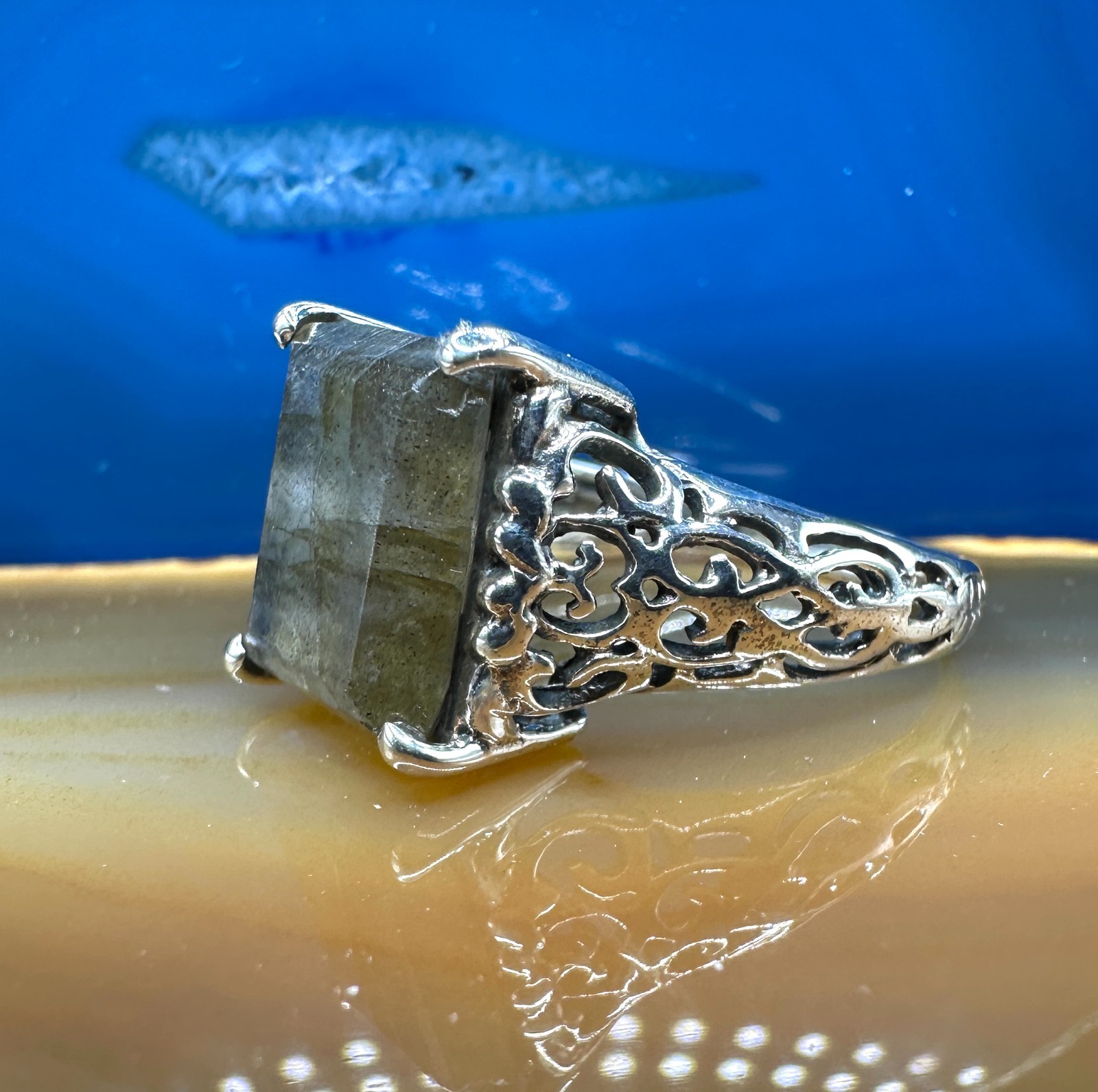 Labradorite Filigree Ring .925 Sterling Silver Size 9