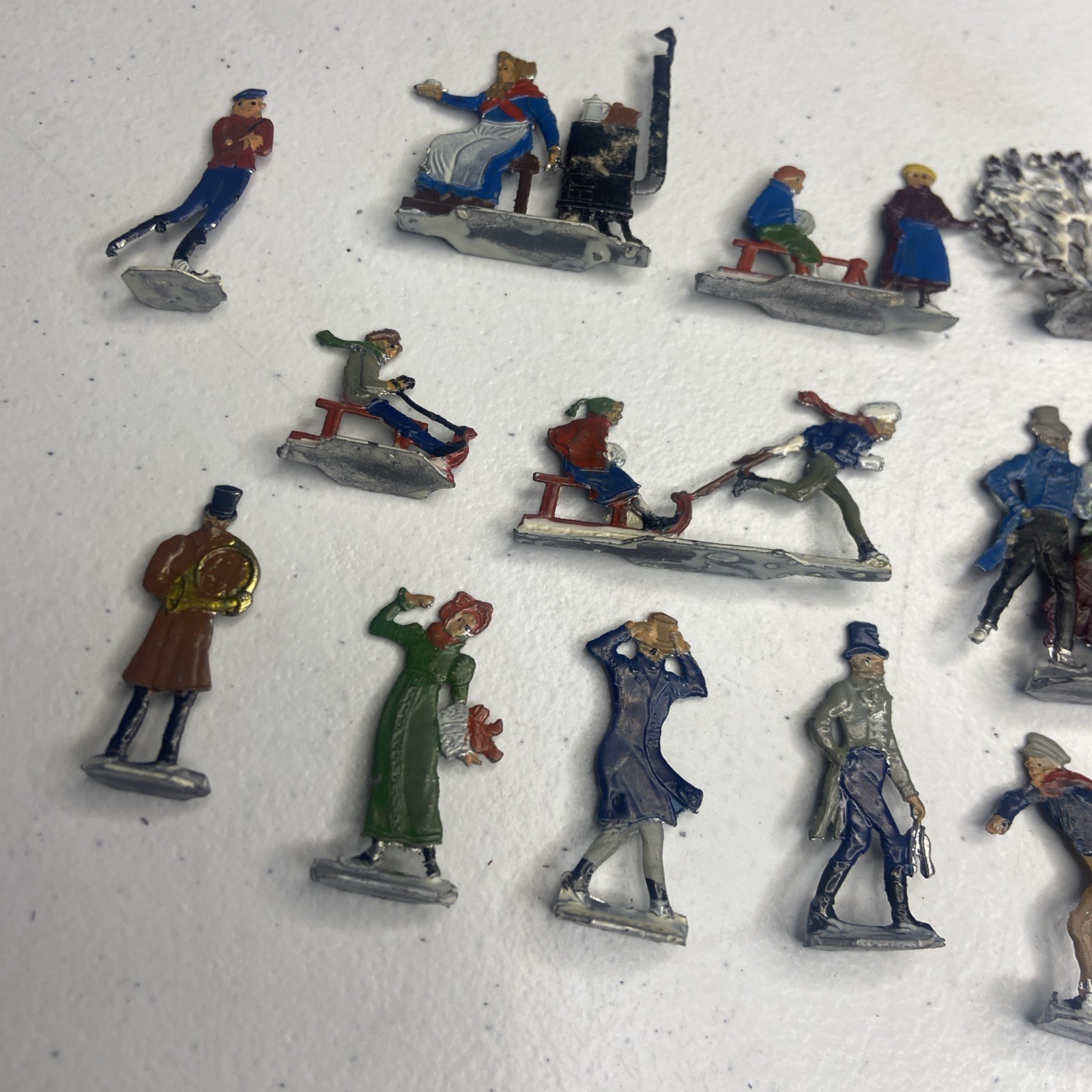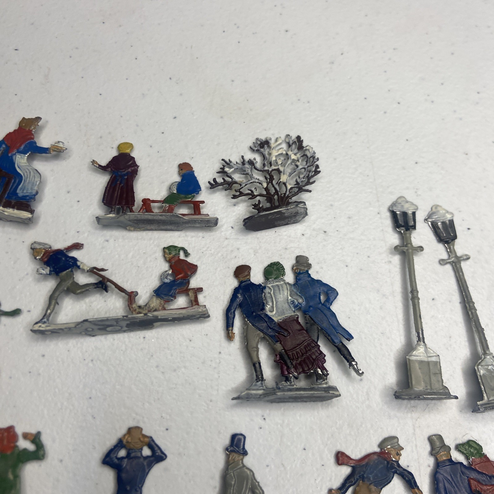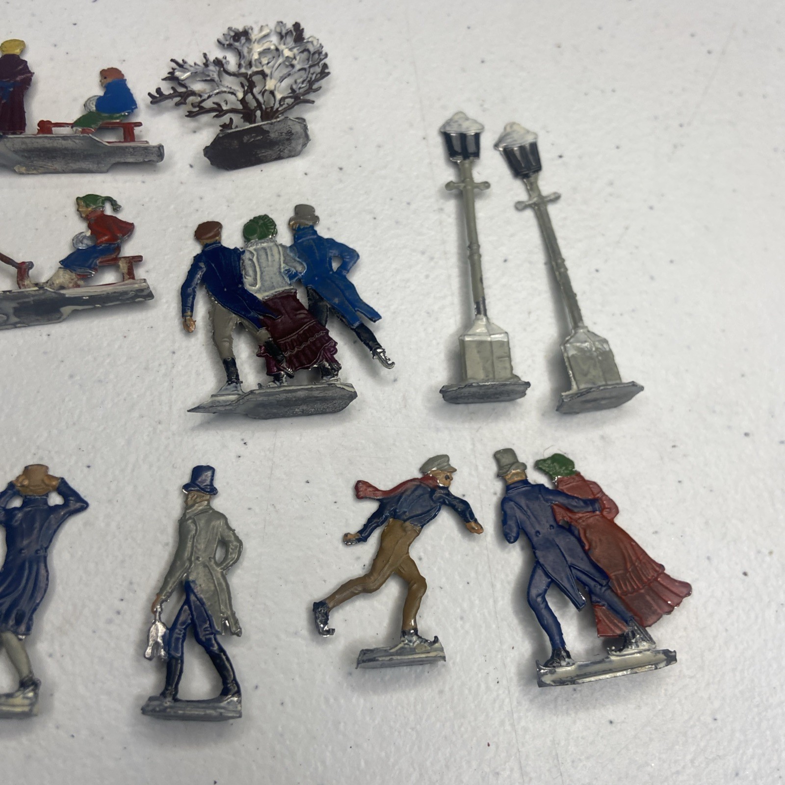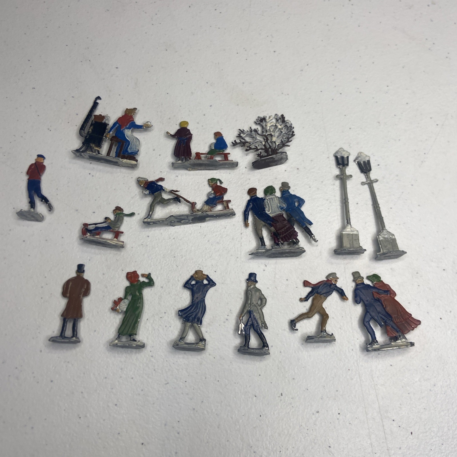 Vintage Heinrichsen German Lead Flat Lot Christmas Village Winter Putz Antique