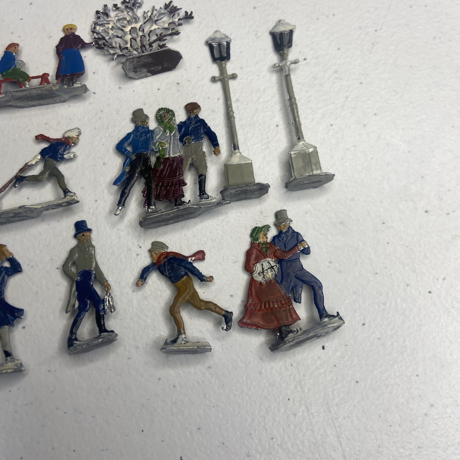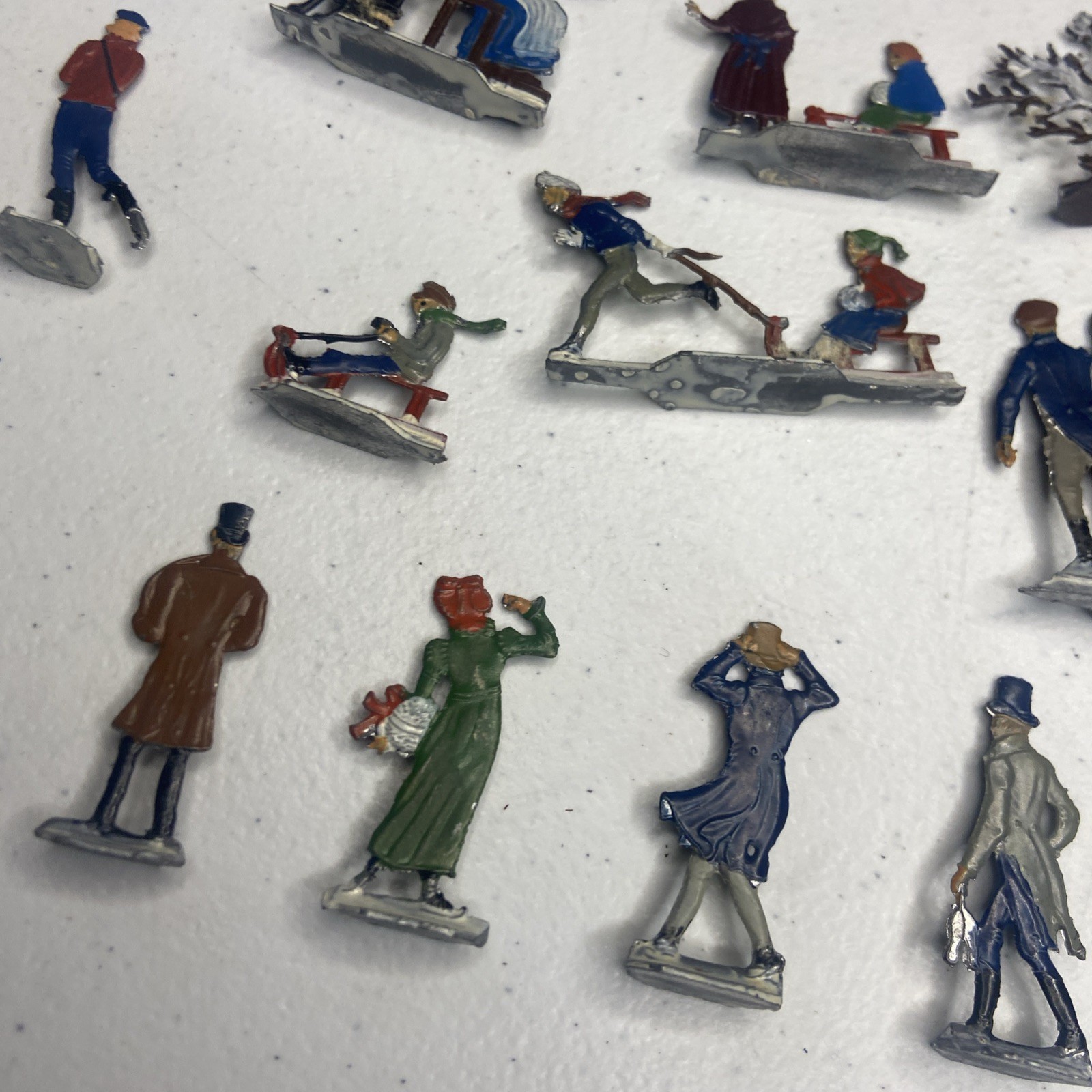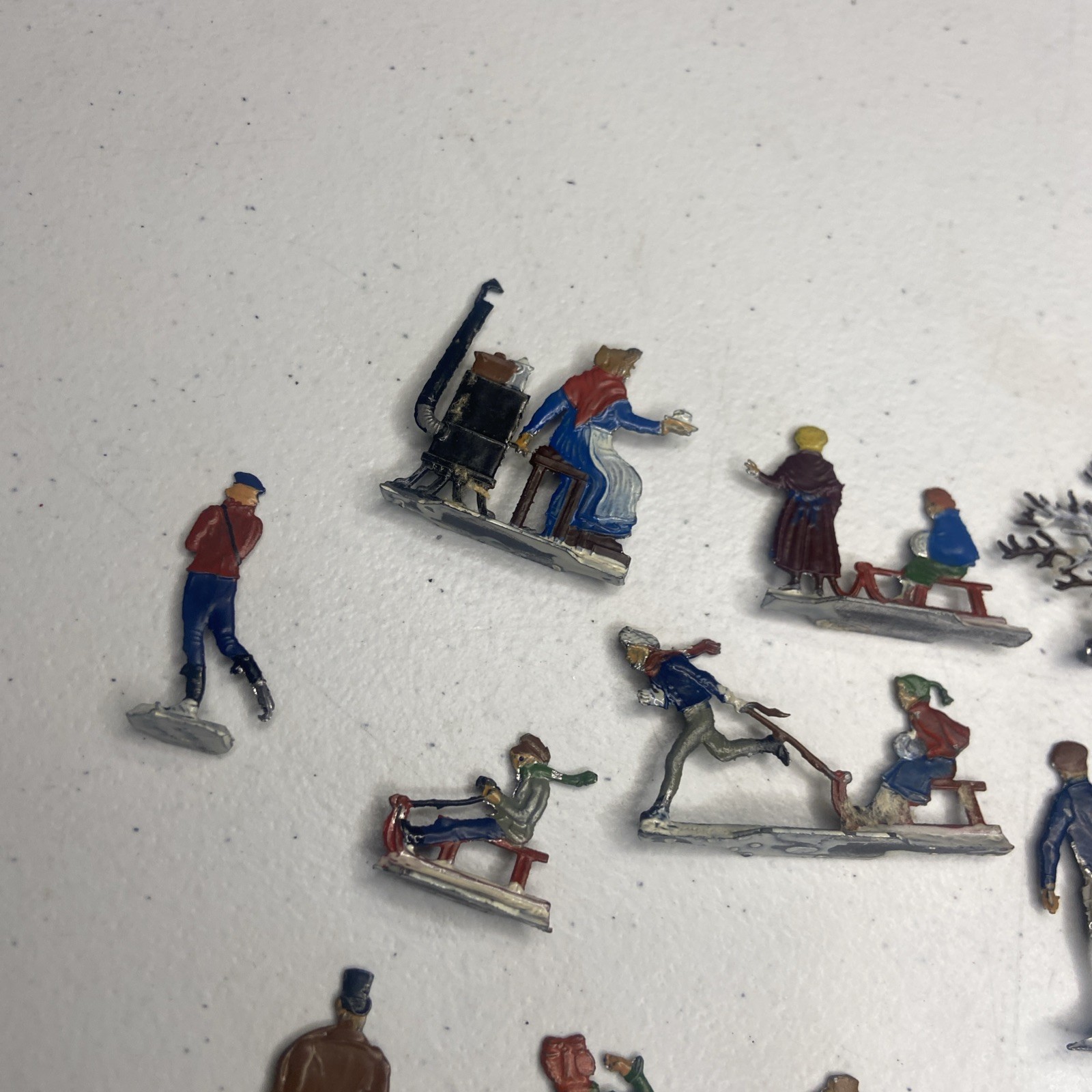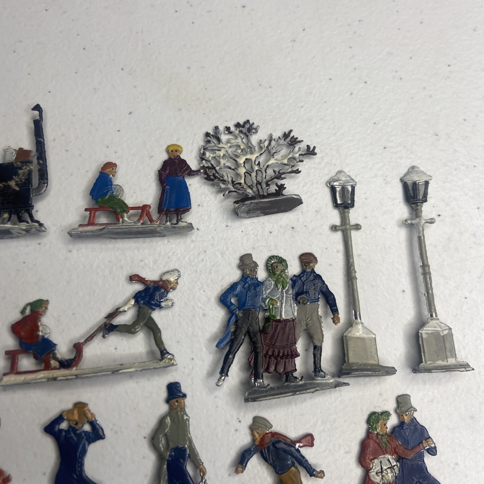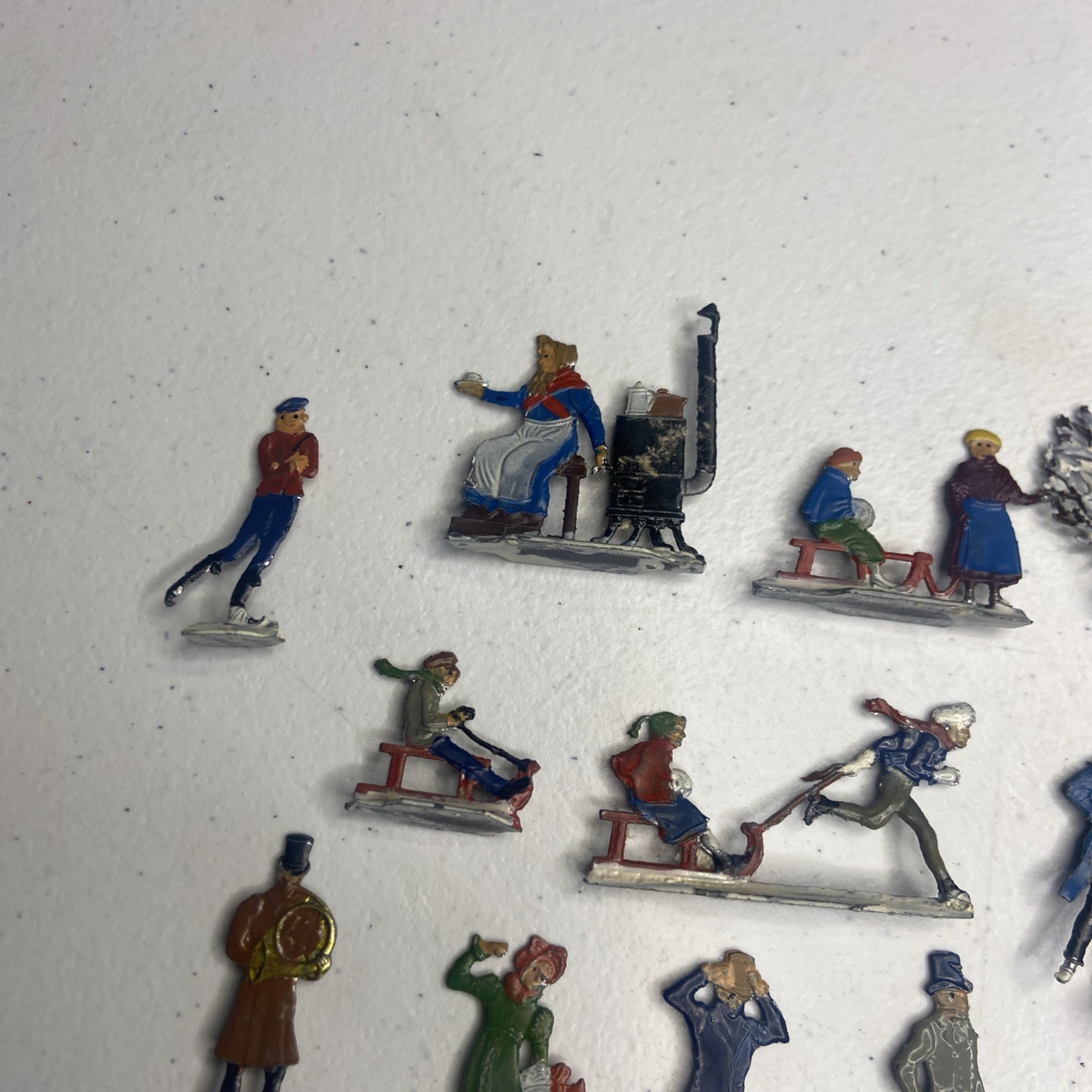 Vintage Heinrichsen German Lead Flat Lot Christmas Village Winter Putz Antique
