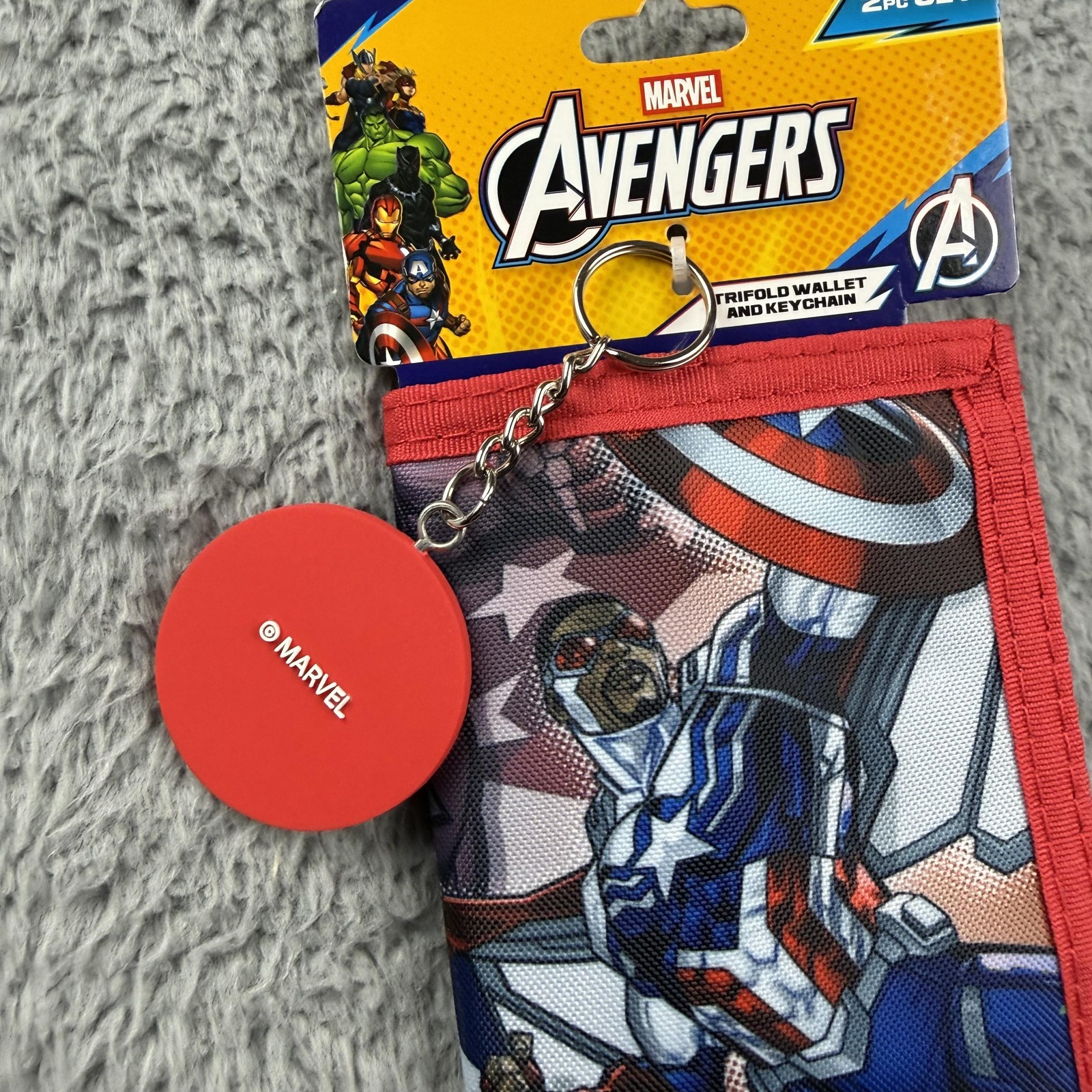 как выглядит Marvel Avengers Trifold ID Wallet Boys One Size Captain America Keychain фото