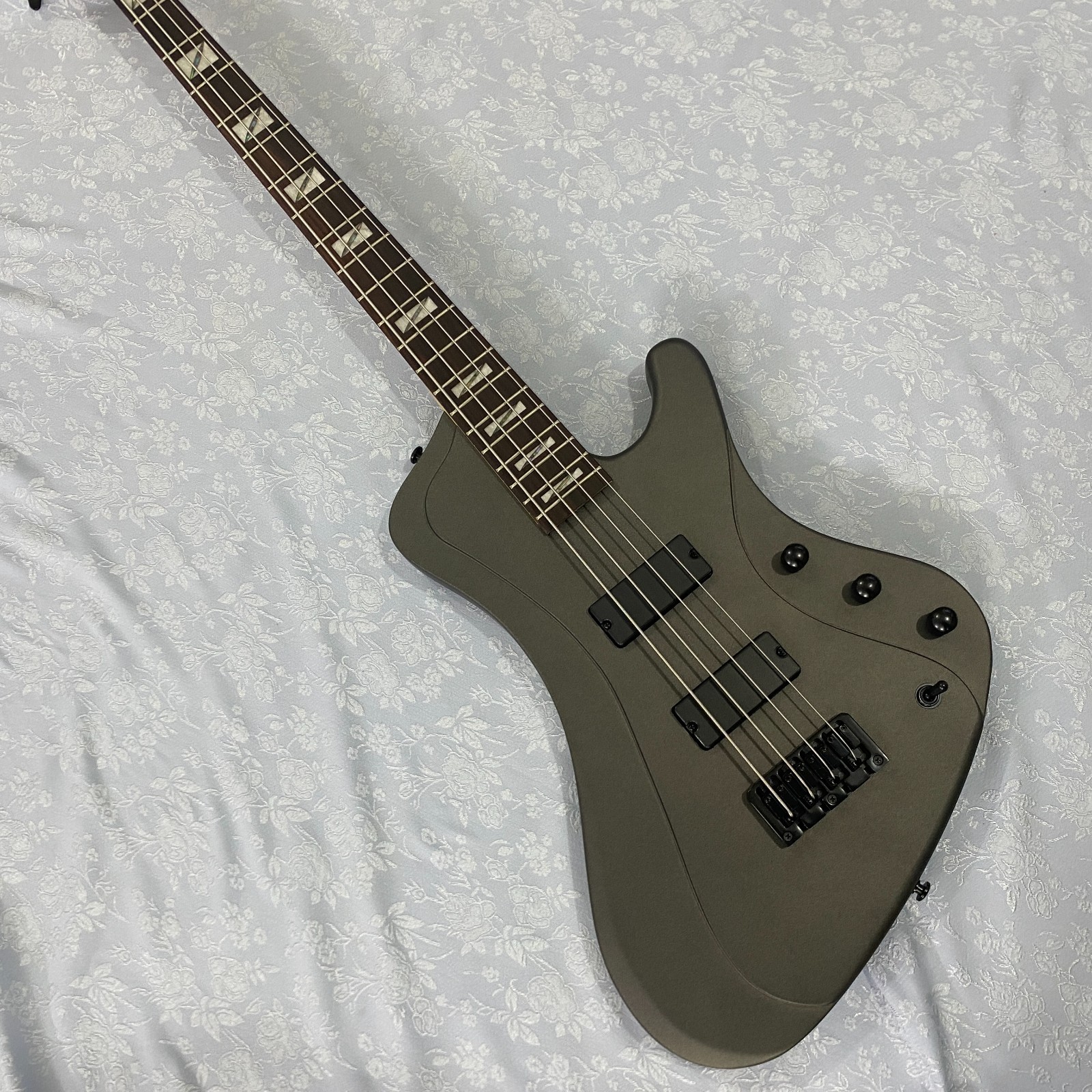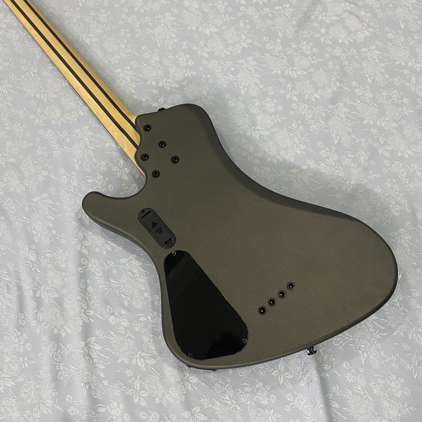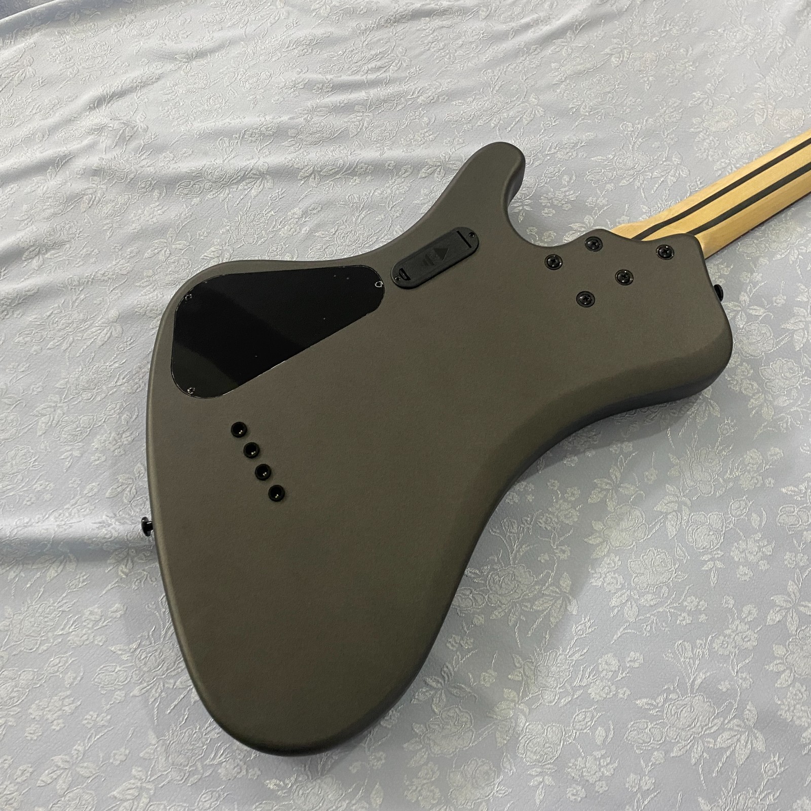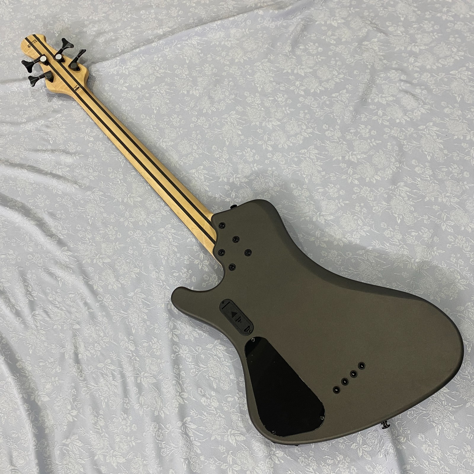 4 String Electric Bass Guitar Matte black and silver solid body maple neck