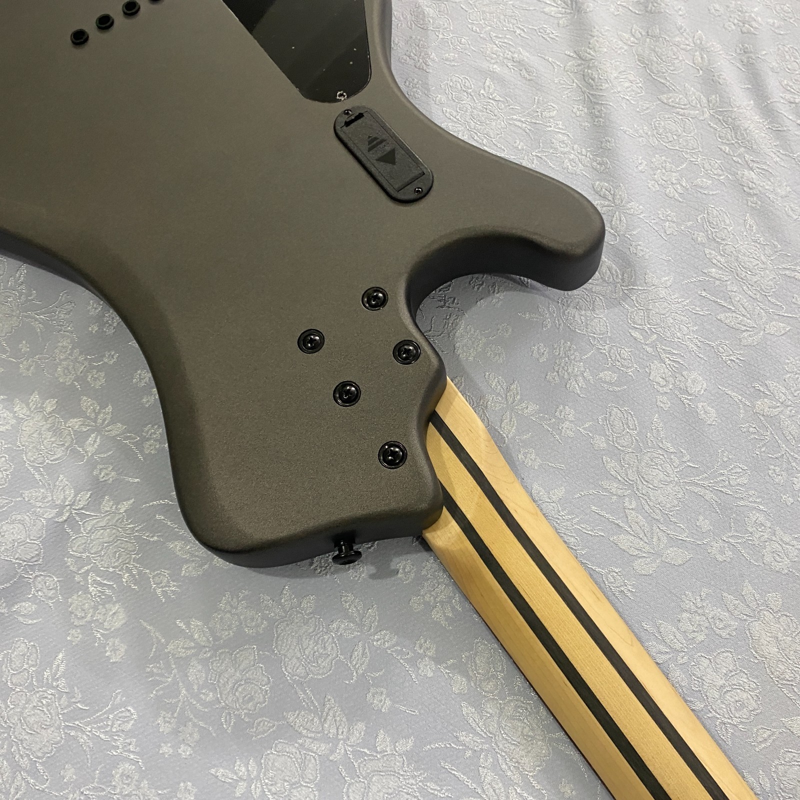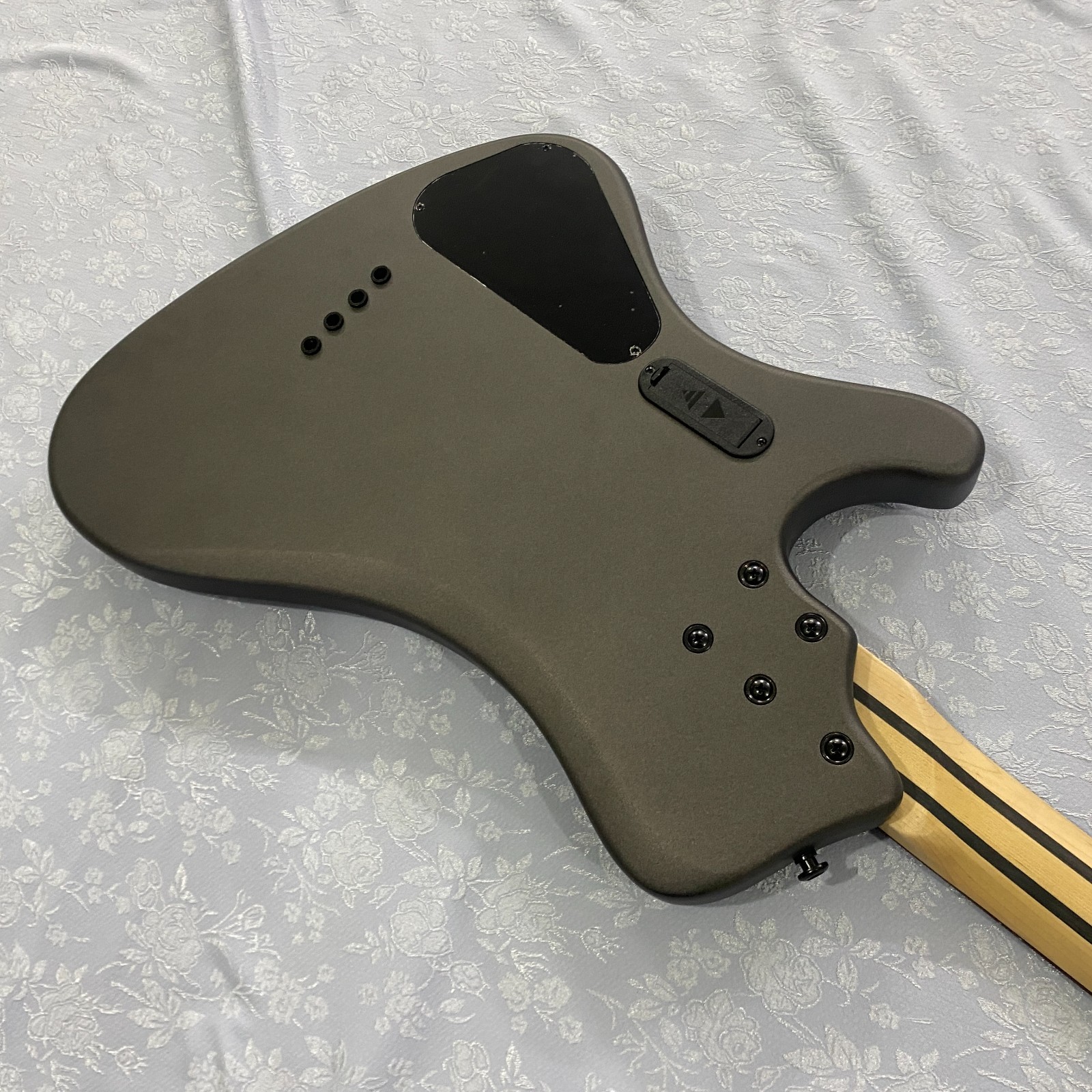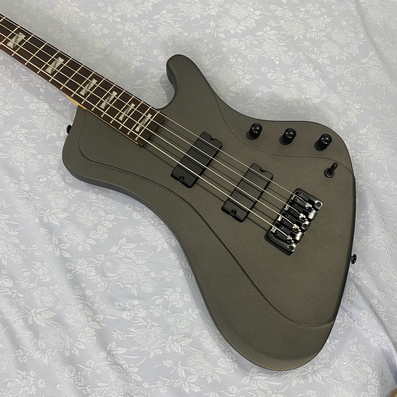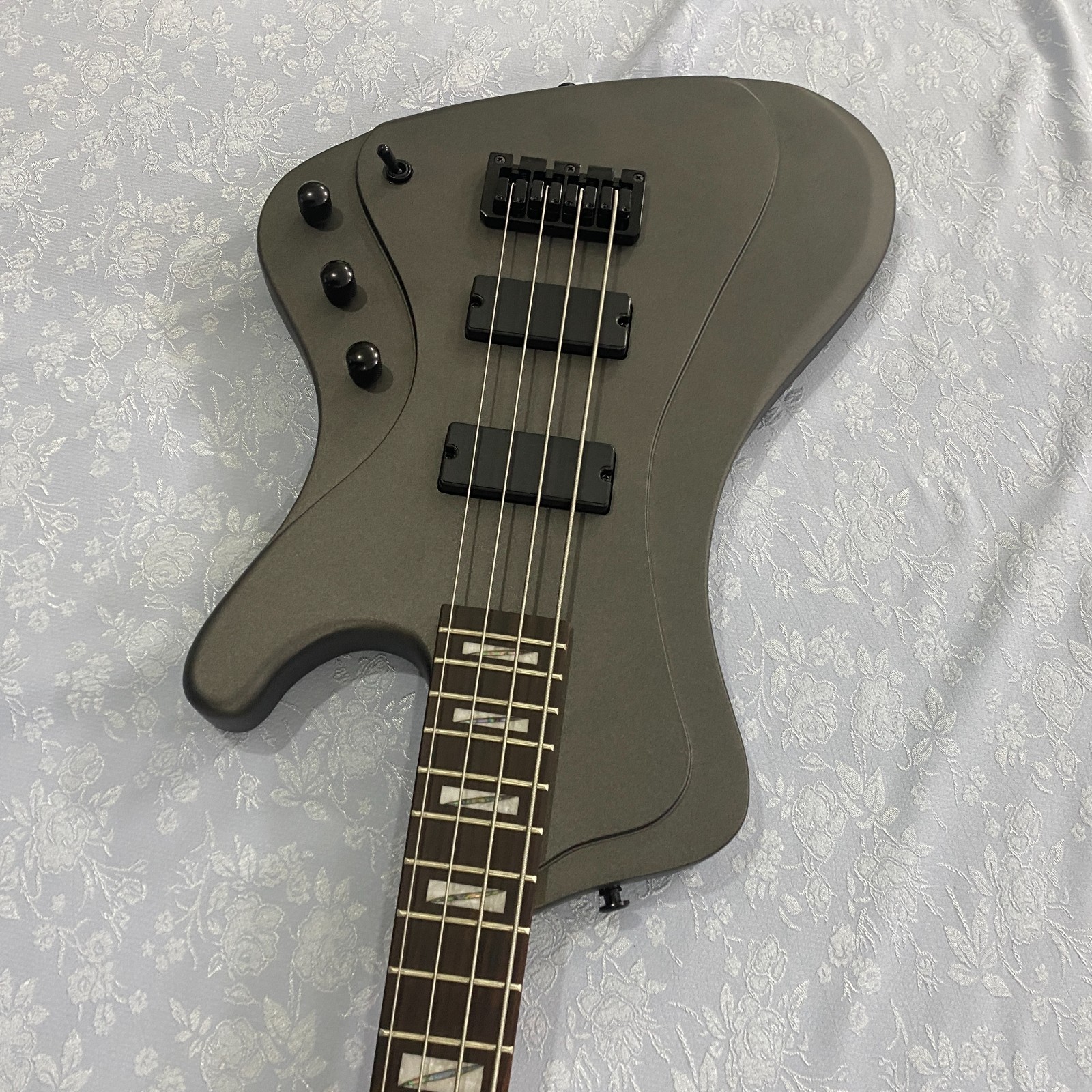 4 String Electric Bass Guitar Matte black and silver solid body maple neck