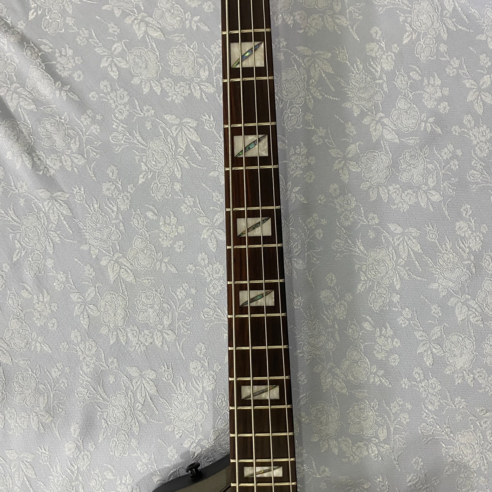 как выглядит 4 String Electric Bass Guitar Matte black and silver solid body maple neck фото