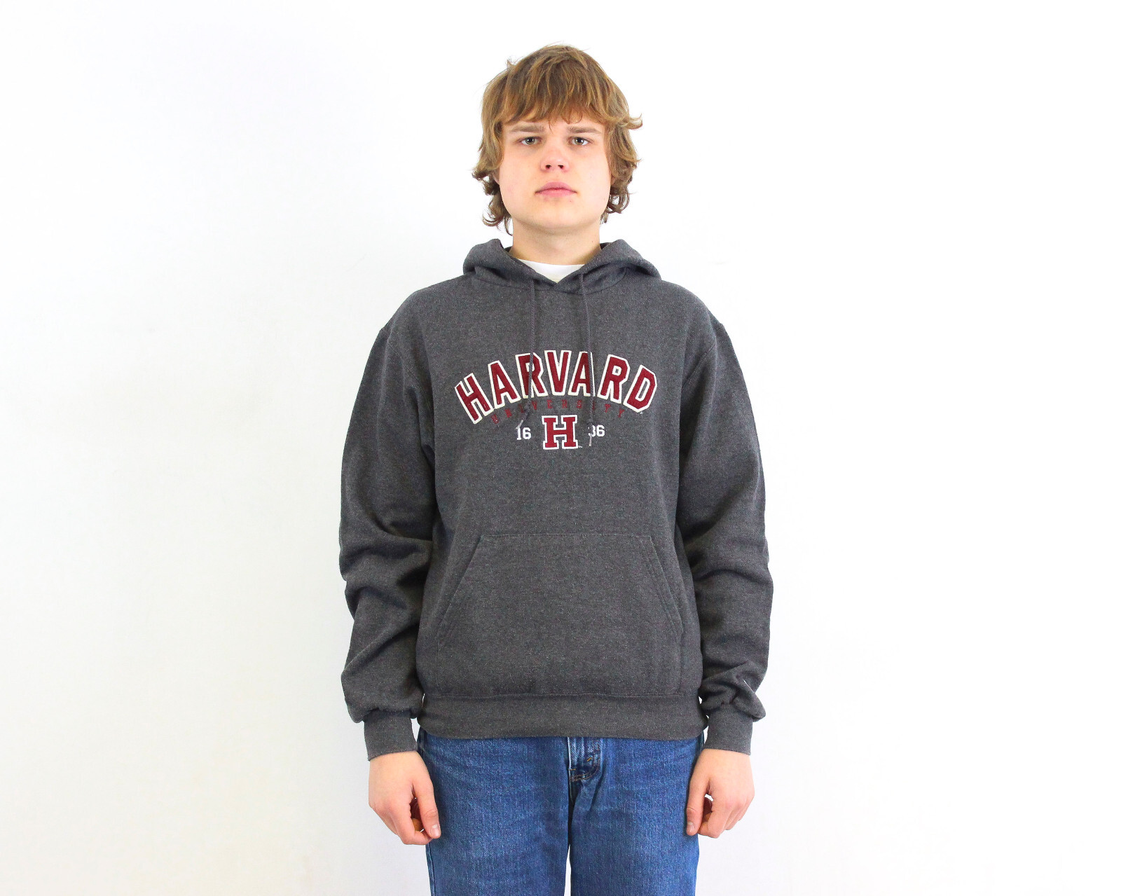 как выглядит HARVARD University Champion Men S Sweatshirt Hoodie Jumper Pullover Sweater VTG фото