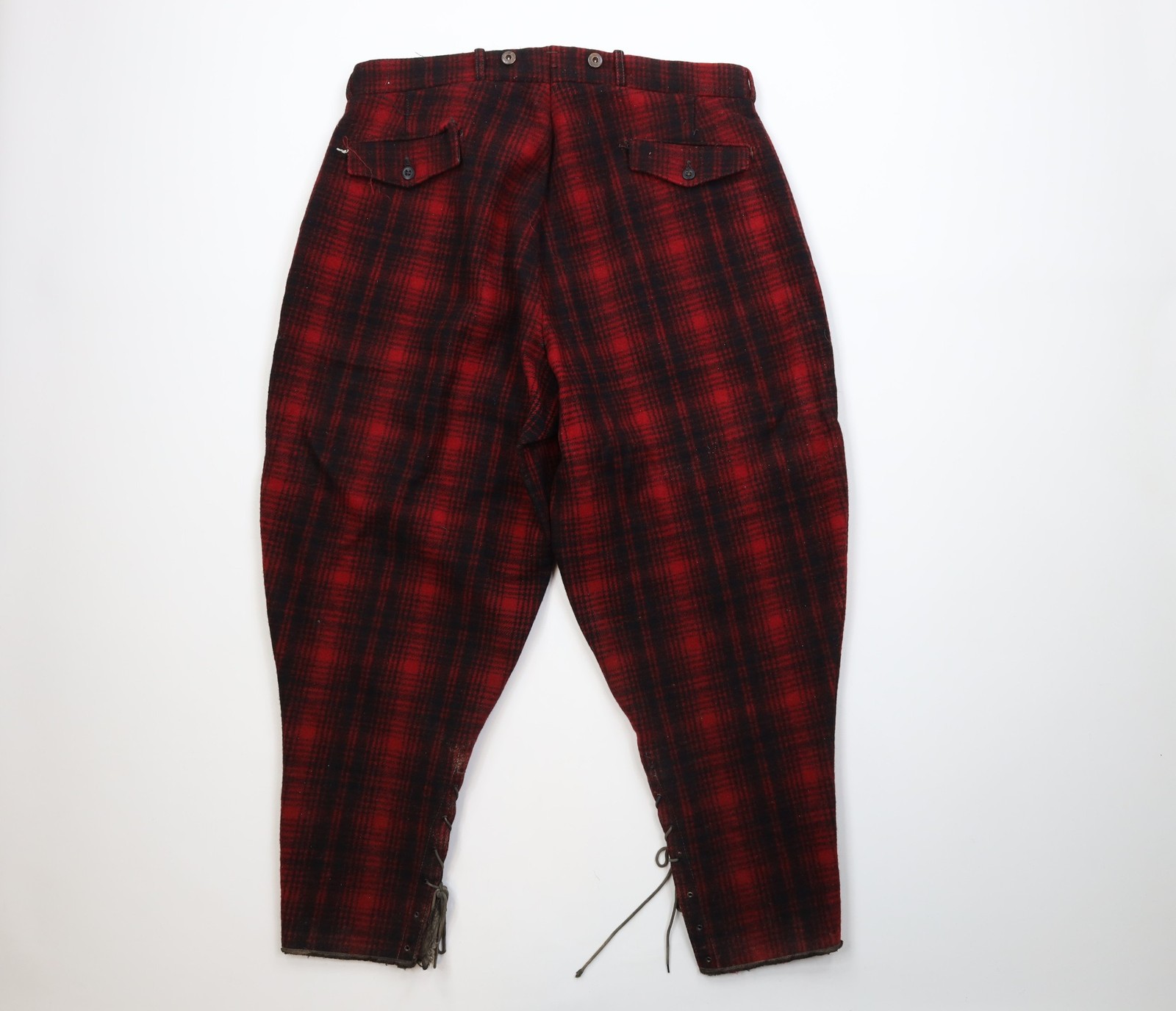 Vintage 70s Woolrich Mens 38x28 Distressed Heavy Wool Knickers Pants Plaid USA