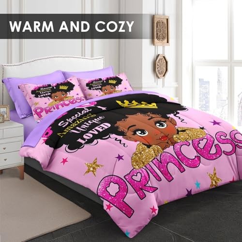 Comforter Set Size, Cute Princess Pink 7 Pcs Bedding for Kids Full Black Girl 2